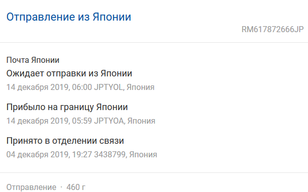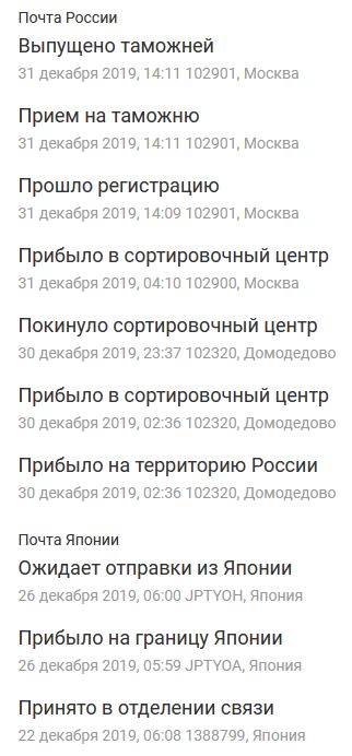 >>48507 >японская почта не принимает посылки Не знаю, у меня приняли и отправили посылку через наземку буквально вчера и сегодня. И трекается через японскую почту.