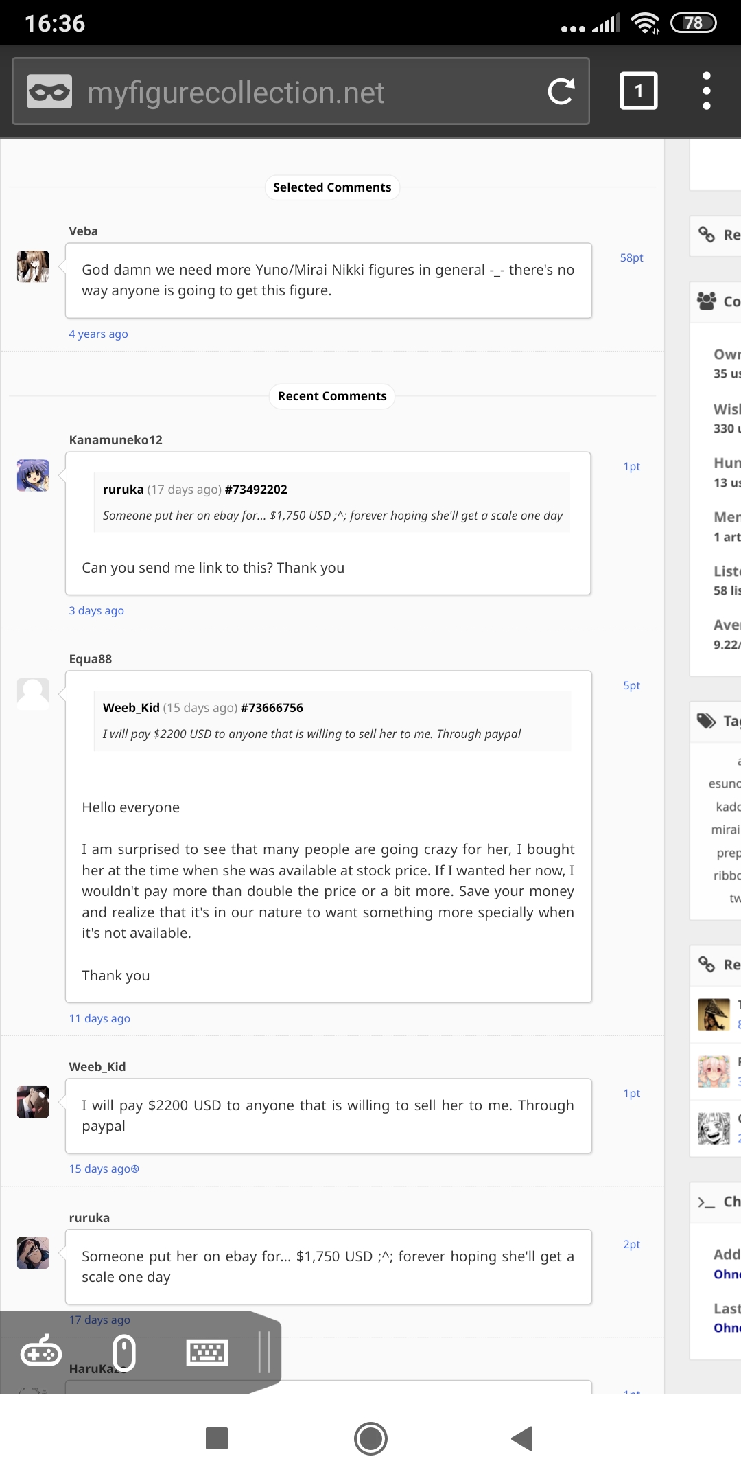 Зайдя на рыночек полки, я увидел свежевыложенные фигурки и вспомнил о мясе, оно же сена-кун. Может ли быть, что мясо распродаёт свою коллекцию. Давно за ним не наблюдал, но по фигуркам похоже на 99.5%. Цены низкие ппц. Возможно троллит кто-то или развод. Возможно я параноик или мало ли что...