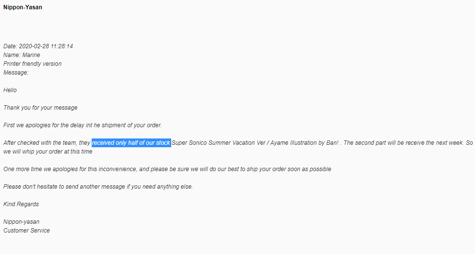 Ебал ясан с их медленной отправкой. Мало того что Жаба задержалась на пару месяцев, так еще и ясан уже неделю не отправляет ее после релиза. Сегодня еще вышла СС, думаю тоже ее они хуй знает когда отправят. Надеюсь ами хоть быстро отправят нептунию которая тоже вышла сегодня.