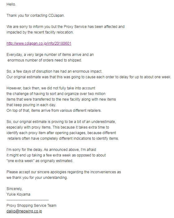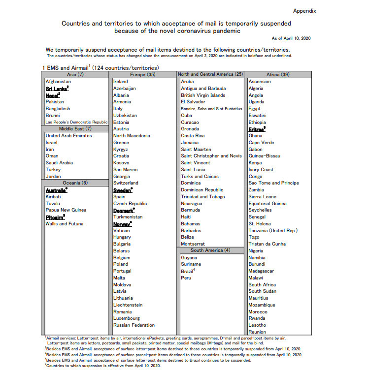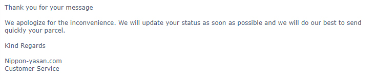 >>48504 >>48505 До вас долго доходит. Не важно, какая обстановка в самой Японии, почта не работает, потому что нет рейсов, не на чем отправлять посылки. Рейсов не будет и после 31 мая, с чего бы им появиться?