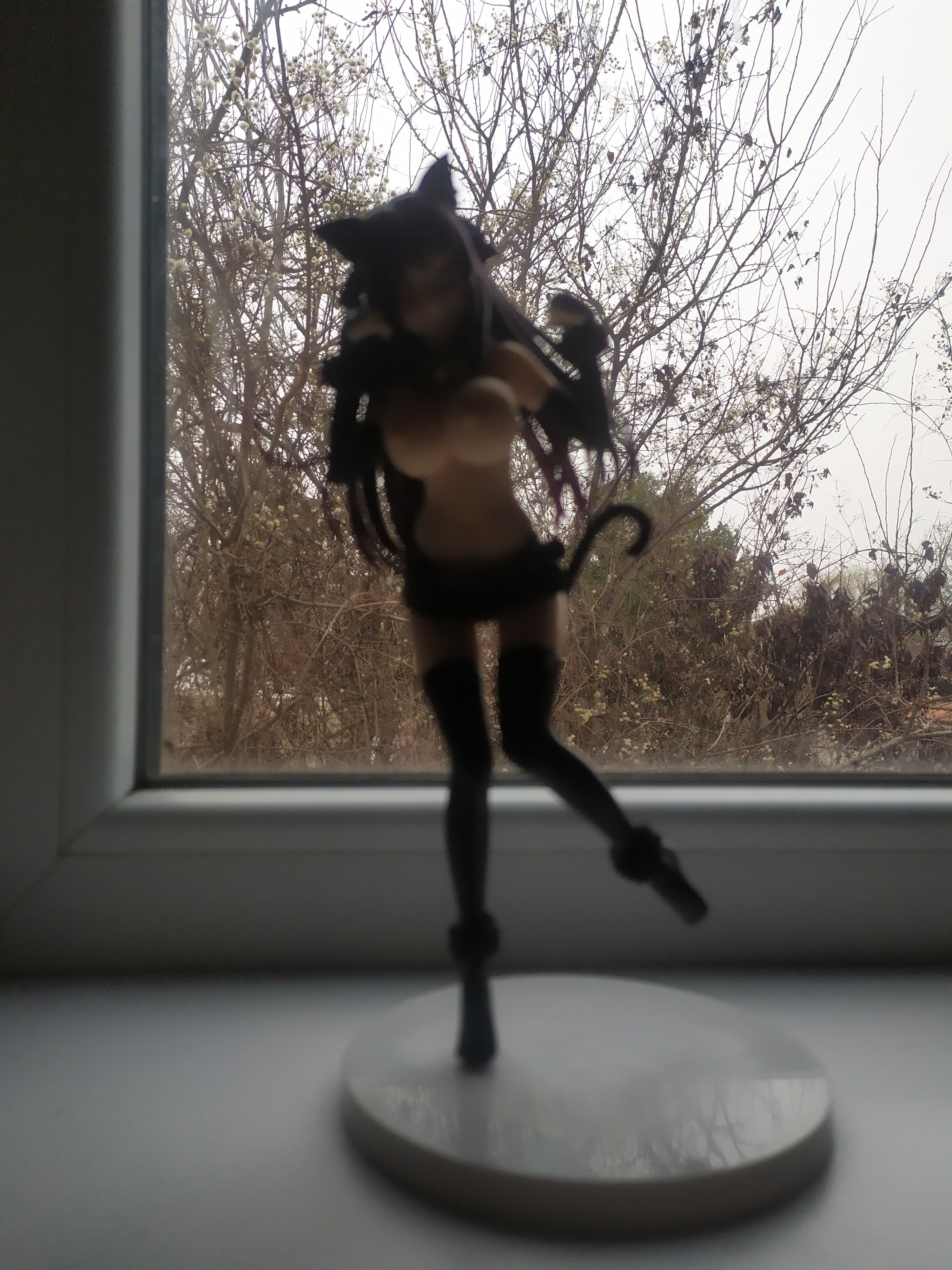 Далее какая то кошка за 1200р. Продала мне ее тянучка рассказывавшая в объявлении ШО ВСЕ СУКА КАК НОЕВОЕ ПЗИДОС и фигурка идеально и коробка новая на комиконе брала. Как итог, коробка убитая нах. Внутри перетянуто скотчем в говне бля буду, огромные коричневые черкаши и обгрызена. На жопе у нее желтое пятно единственная фотка которой не было в обьявлении. На лифаке застежка сломана и обгрызена. Лифак в целом сидит очень криво, даже если поставить его на клей, как на коробке он выглядеть не будет. Выглядит очень кривым и инородным. Плюс везде есть небольшие неточности с покраской и пара царапин. Подставка вся как наждачкой дрочили. Глаза всратые, не как на коробке. 1200 + доставка за такое жалко. Вот скажем 700р без оплаты доставки за фигурку такого качества я бы дал.