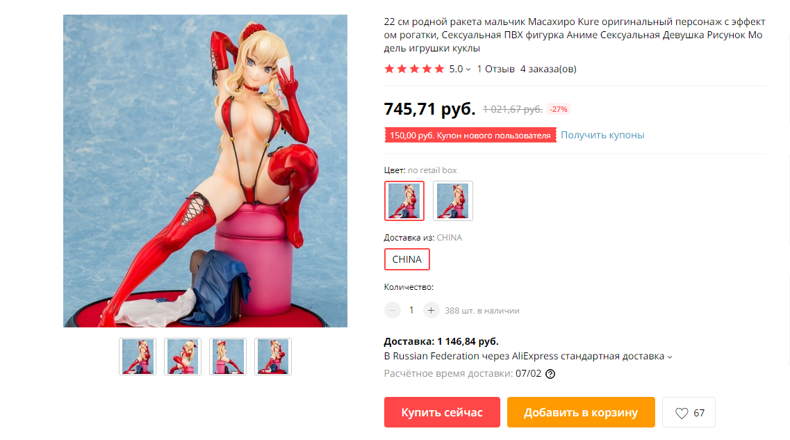 >>46841 1) Фотография от оригинальной фигурки. Тебе приедет (очевидно) не то, что показано на картинке. Насколько хуже - хз. Имхо, букет во внутренней части щита будет похерен в первую очередь. 2) Ты сыграешь в лотерею на доставке. "Без retail box" - она приедет, обмотанная в пупырку, так что молись, чтобы не сломалась по дороге. "С retail box" - она приедет, обмотанная в пупырку, а коробка будет сложенной валяться на дне посылки и никак не амортизировать содержимое. Короче, блистера не будет. Из-за того, что отстоящие части юкаты не отстегиваются, на твоем месте я бы сильно сцал, что в пупырке она не приедет целой. 3) Тебе может приехать сверток пупырки вообще без картонной коробки. Узнавай об этом у китайца, чтоли.