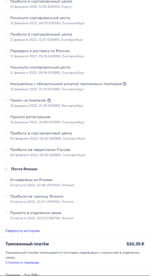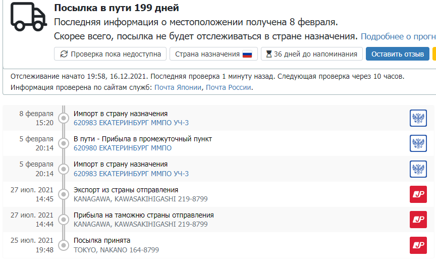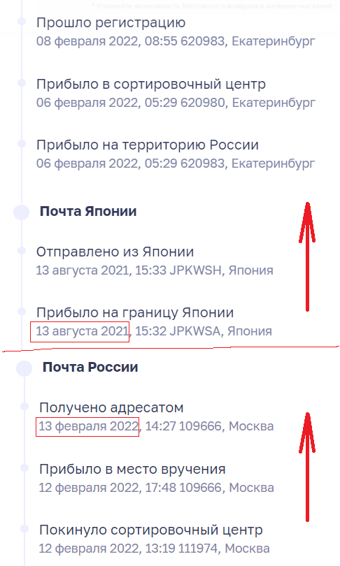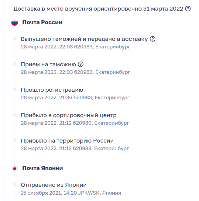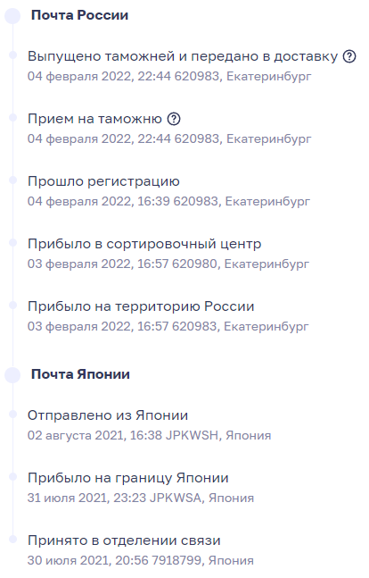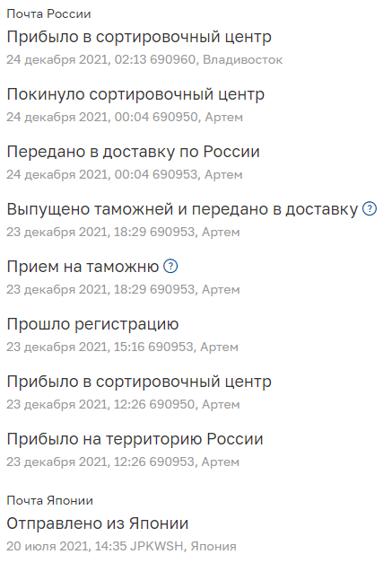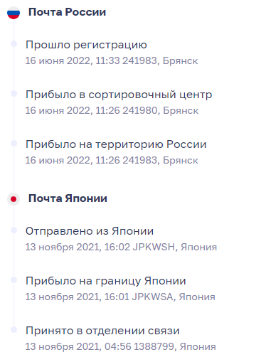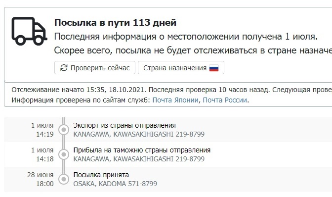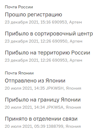 Сегодня выскочило уведомление в приложухе, что посылка поступила на сортировку, захожу в приложуху, а там все так же "Отправлено из Японии" и 86 дней в пути. Проверил трек на сайтах, тоже дальше отправления не прошла посылка.
