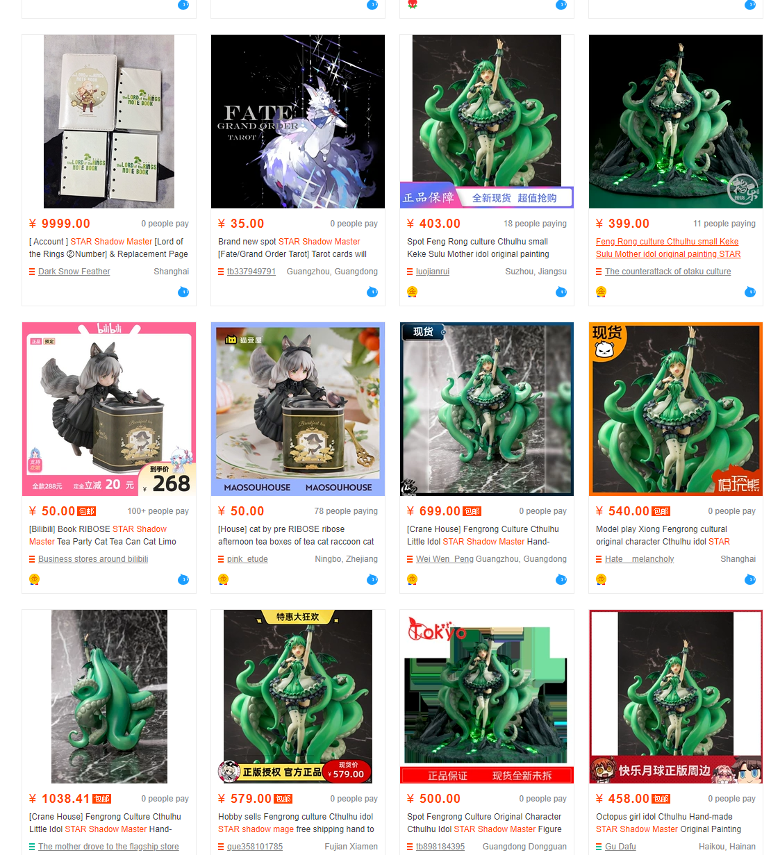 >>52819 Нет, официальный магазин производителя в Китае. Вообще палю фишку - у китайцев есть крупные аниме магазины (например HPOI) продающие только лицензию и часто спрос в японии и китае разный. Поэтому там некоторые фигурки иногда в разы дешевле на вторичке. самый лол что у того же hpoi есть лакибокс с фигурками и они туда весной всем подряд пихали фигурки по фейту, которые в японии стоят дофига