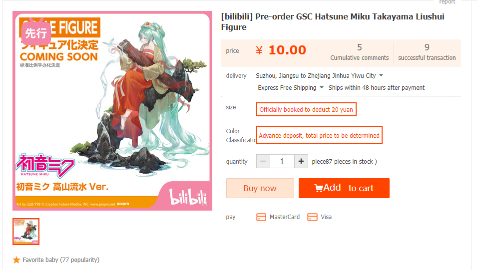 >>52835 Это депозит. Все китайские фигурки/статуи будь они лицензионные или нет работают через депозит. Т.е. сперва вносишь сумму депозита, а оставшуюся часть счета тебе вышлют когда она на склад приедет. Депозит не возвращается если вдруг передумаешь. Средняя цена 1\6 300-350 бачей 1\4 - 450-500 1\2 1500 1\1 2500 Если по лицензии то к этой цене накидывается 100-2000 бачей сверху.