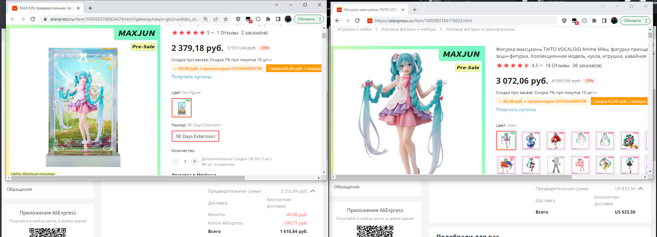Я хочу купить себе первую фигурку. Вот я нашел нужную, и она есть на али в вроде приличном магазине с отзывами и подписчиками https://sl.aliexpress.ru/p?key=5SqItqn Но тут она стоит 16к вместе с доставкой. А есть еще такой магазин где она за 11к, это я так понимаю подделка или у первого магазина может быть такой оверпрайс? https://sl.aliexpress.ru/p?key=oEqItof А может есть на авито какие то барыги которые могут притащить эту фигурку и цена будет ниже чем на алиекспресе