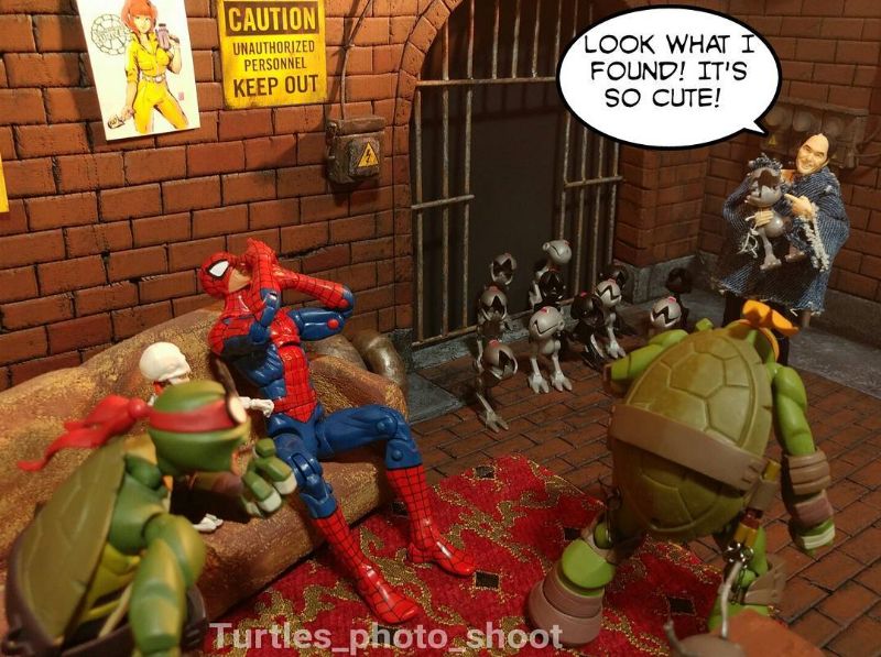 >еще один косяк этих черепах - там подвижно все, даже пальцы. Отсюда и вытекает - они неустойчивые. Нужно будет поебаться, чтобы в норм позу поставить. У меня веном, карнаж, паук и жч от ямагучи и там тоже полно подвижных деталей, так что я привыкший. Немного поебался, зато потом офигенно смотреться на полке будет