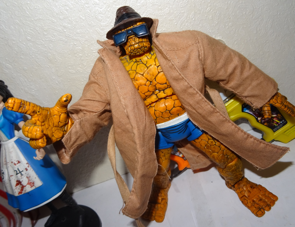 >>40381 Кстати, у тебя есть какие нибудь "фетиши" которые в фигурке особенно подкупают? Я вот падок на съемные элементы. Маски и шлемы которые реально снимаются а не являются сменными головами, а еще люблю когда добавляют немного тканевых элементов. Не как Мезко, а исключительно плащи, пальто, халаты. Особенно падок на героев в "казуальном". Классический троп с пальто для маскировки как в Черепашках Ниндзя. На мой взгляд когда вся одежда на фигурке ткань, в несколько слоев, то это полнит персонажа, по тем же Джокеру и Гордону от Мезко видно, будто бабушка одевала, а вот когда один слой ткани это заебца. Хотя может я просто говноед. У меня есть вот такой Бэн Гримм под прикрытием и Джо Фиксит, ну или как его иногда переводят ДЖО РЕШАЛА. Завтра если не забуду, сфотографирую Женщину Халк в костюме адвоката. У нее и очечки съемные есть.