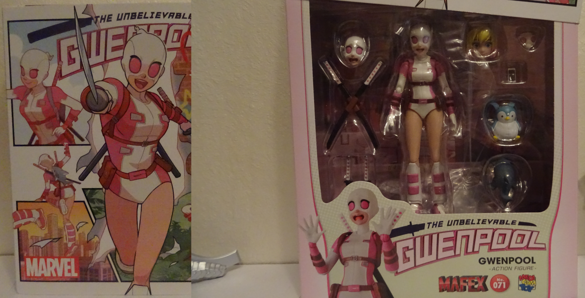 Распаковал наконец свою Гвенпул. Очень няшная фигурка, батя одобряет. Много аксессуаров, вариантов для поз немерено, позже может попозирую ее. Шарниры достаточно тугие чтобы не разваливалось, но и не настолько тугие чтобы сложно было менять руки, а вот каждый раз когда меняю голову становится страшно. Алсо говорят Мафекс пиздец хрупкие - пиздят. По крайней мере может ранние фигурки и были хрупкими, но моя няша не развалина, она сильная женщина!