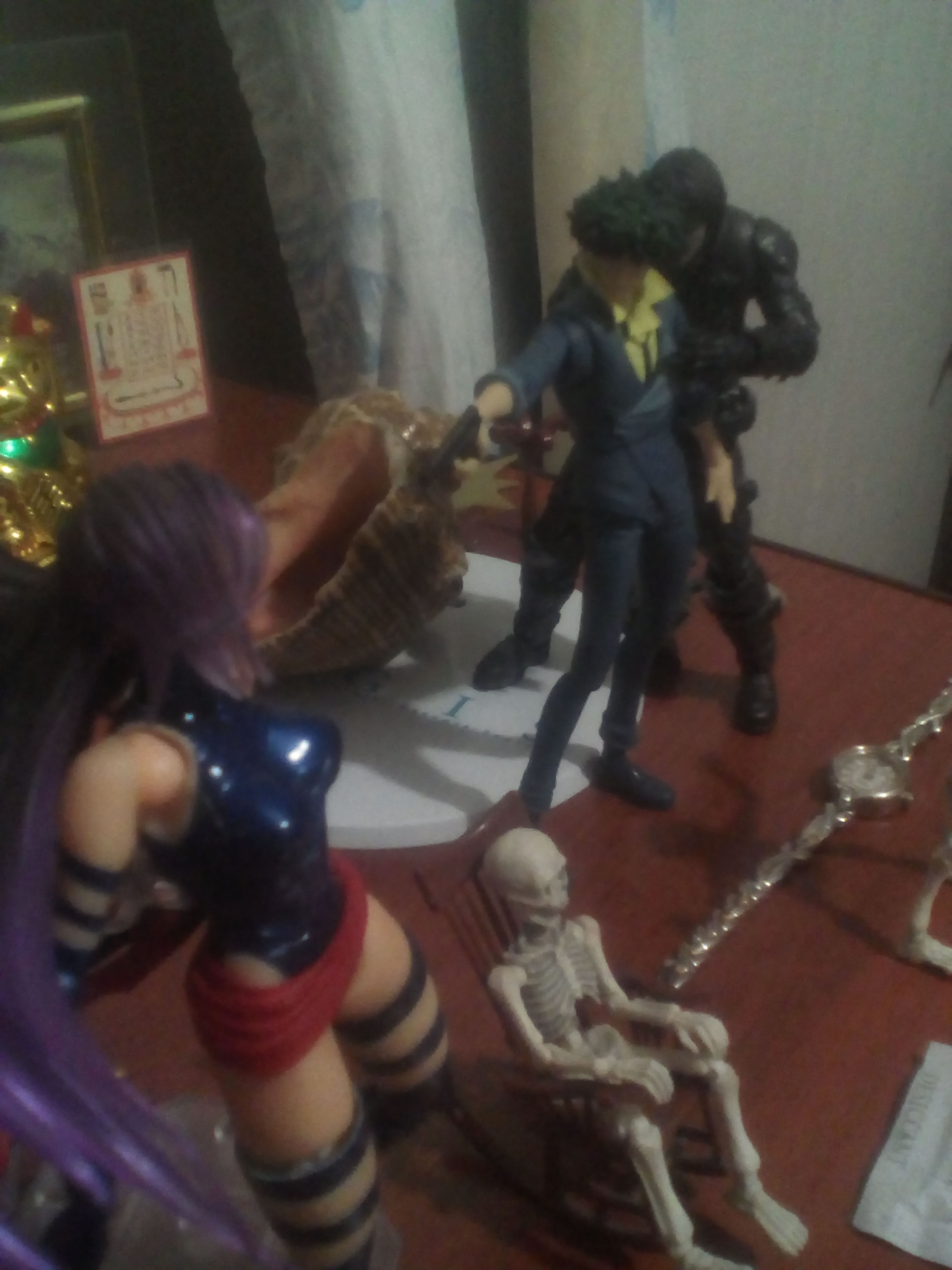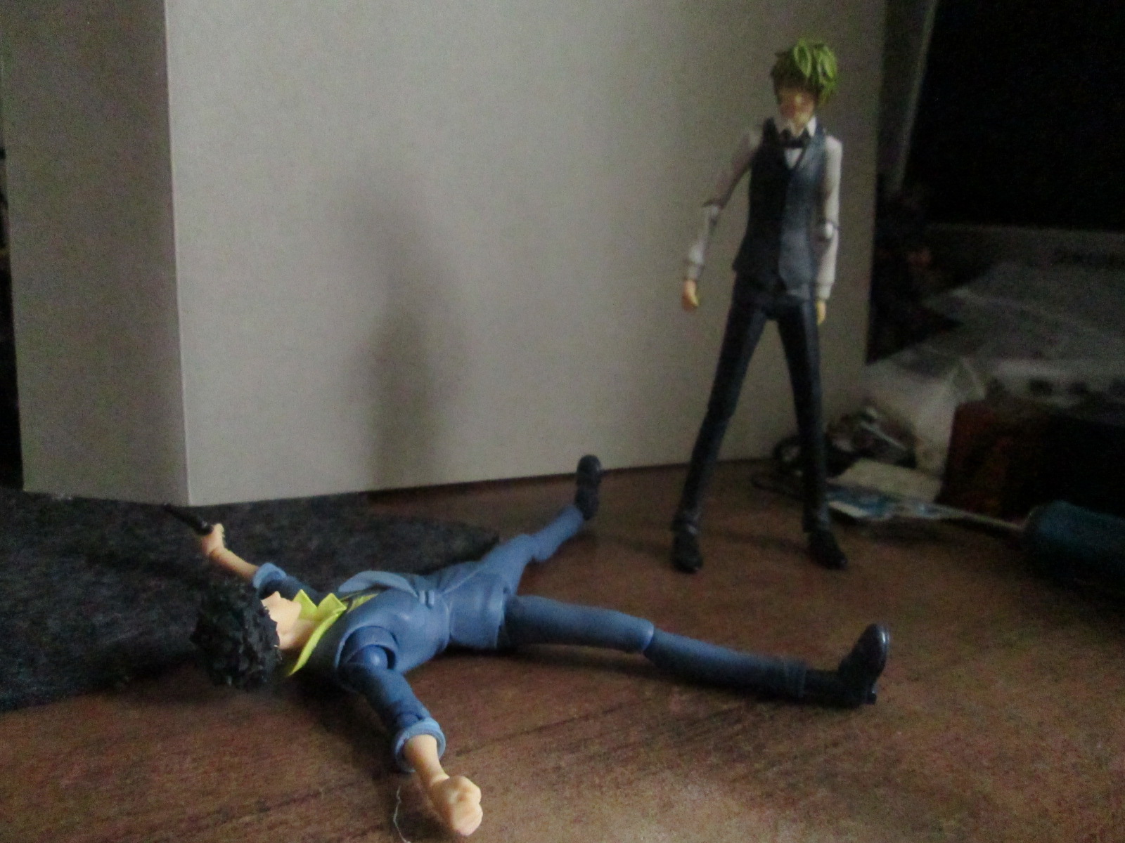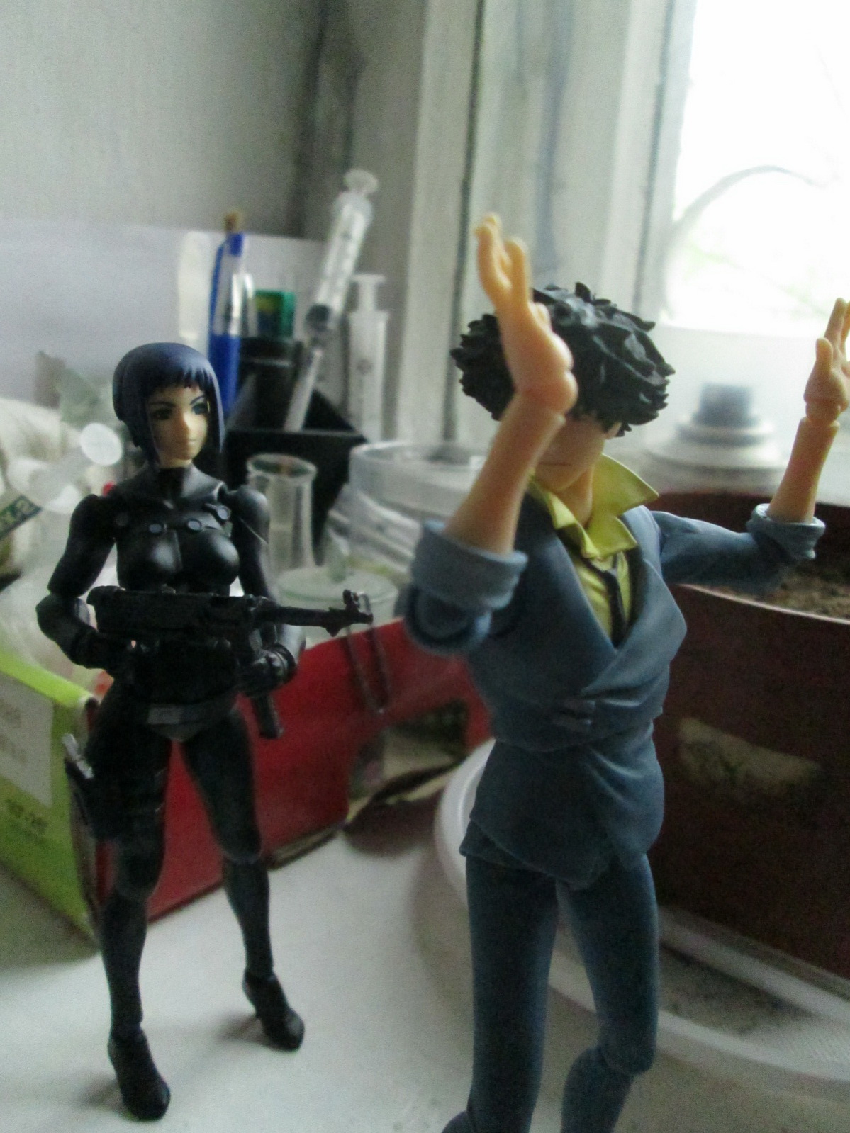 >>43369 >Что за резинки? Ими к рукам фигурки приматывают оружие и мелкие аксессуары обычно >Ракурс со спины не очень удачный. не видно например занесенного альроном кулака. Выбирал так чтобы Пима видно было, плюс в живую обзор у полки лучше. >Поставить так, чтобы он одной ногой на кирпичи в месте разлом наступал одной ногой. Упадет, проверял. >А то как то подставка сама по себе стоит... На подставке трупик Осы, Кло целится в Осу, типа он ее и сбил только что звуковой волной.