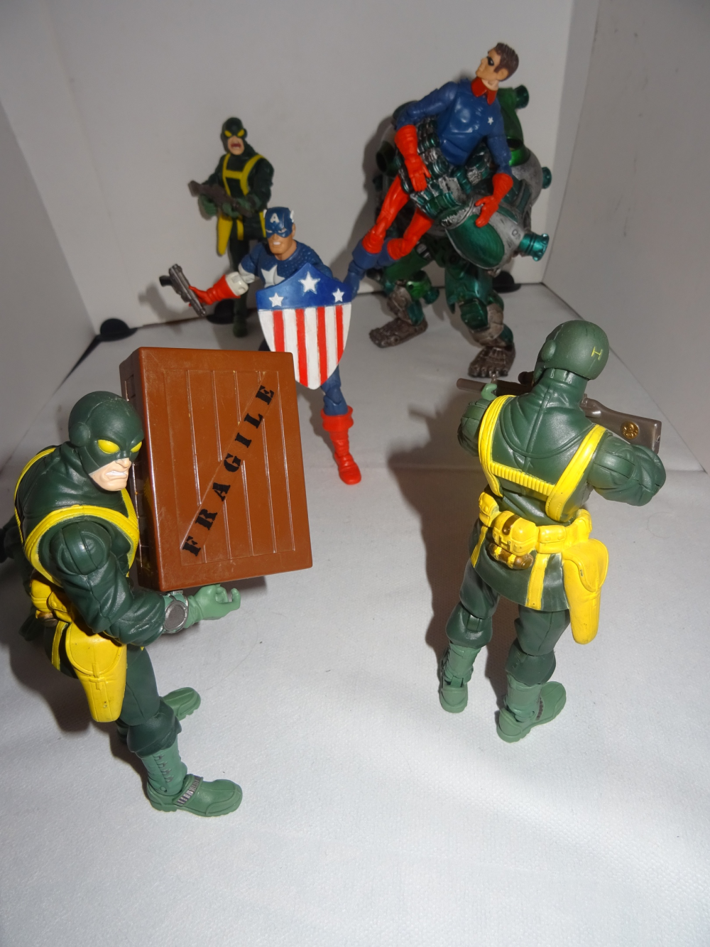 Вот Великан это ретро лютое, до-легендовская эпоха Toy Biz, из бокса по оригинальному составу Мстителей, выпущены как я сказал они были в 1999, по меркам того времени они неплохи, сейчас на мой взгляд только великан выглядит прилично, хотя по подвижности уступает современникам.