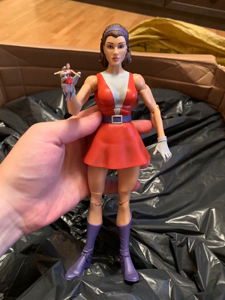 А хотя не, у того рожа была именно экшнфигурковая. Но этот все равно крутяцкий. И я погуглил, у этой рост ближе к 15см, а у той, которую я смотрел - немного не дотягивает до 14см. 15см + ботинки, маска и шлем - как раз будет чуть выше, чем марвелота.