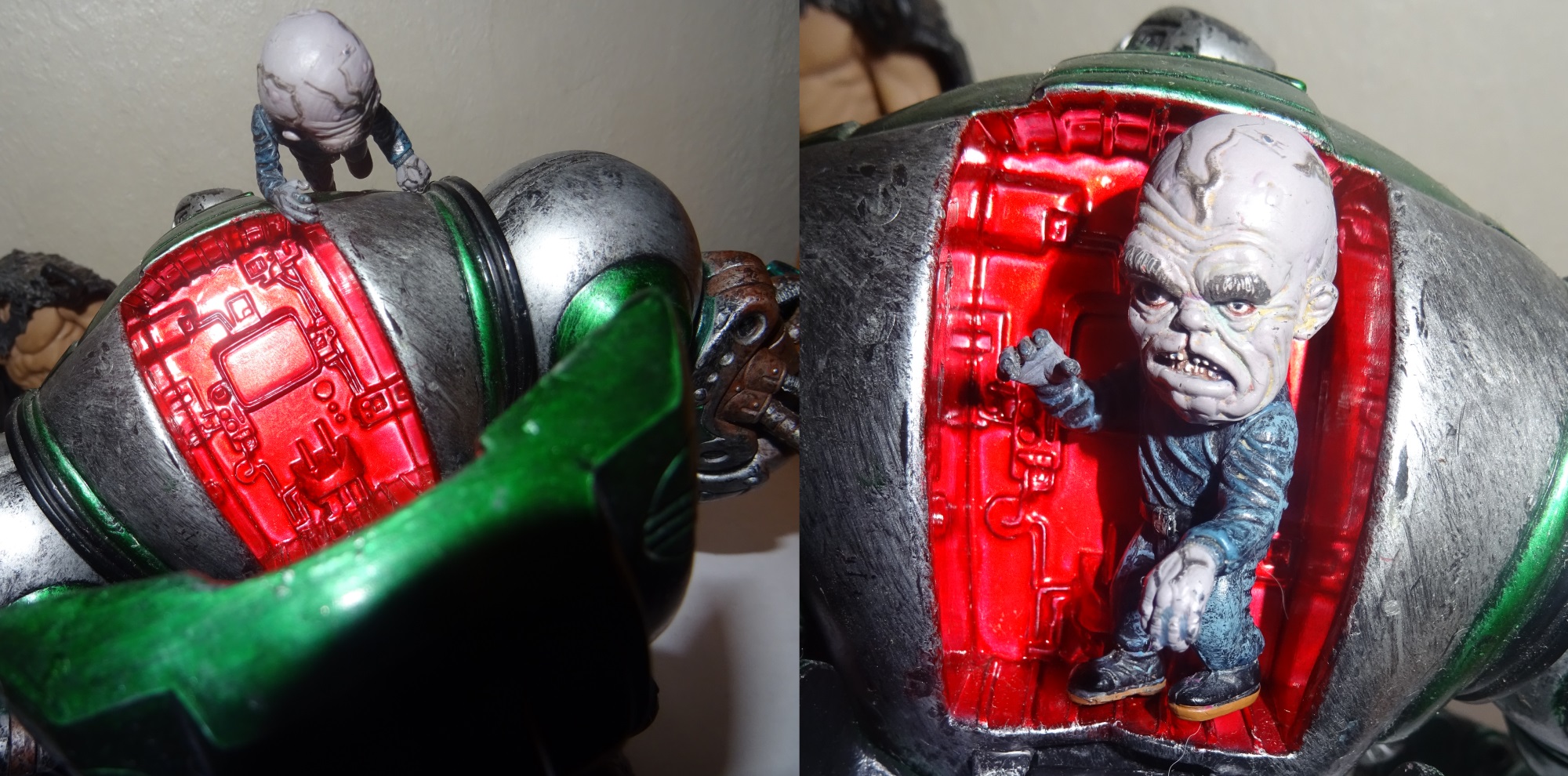>>43682 Руки в плечах, ноги в бедрах и голова подвижны. 5 точек артикуляции, меньше чем у фигурок из 90х, но для своего размера норм. У Меха Халка в спине кабина открывается, там красные стены, мониторчик есть, и туда ставишь Гремлина, типа он в экзоскелете.
