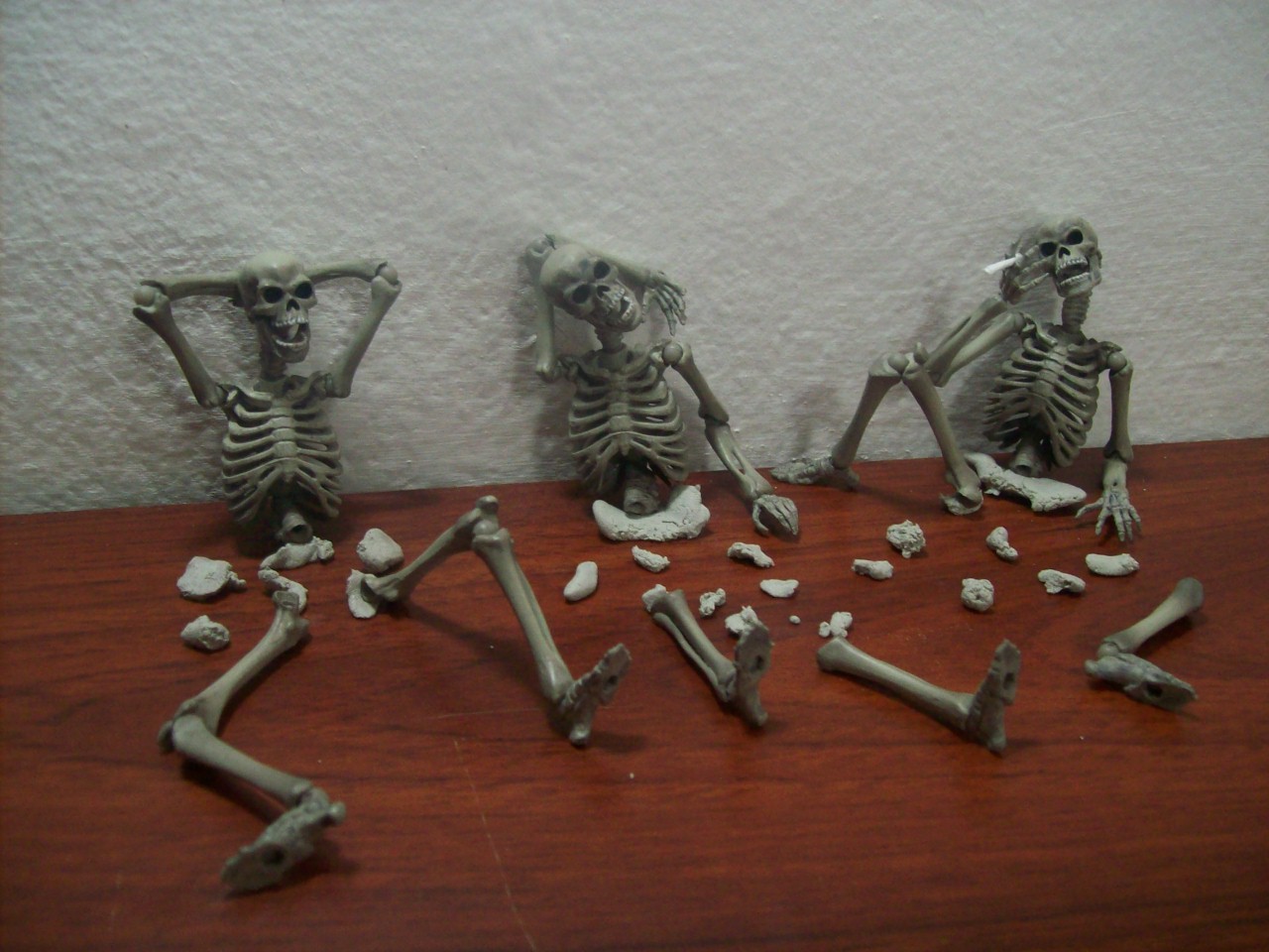Посоны. Знает кто-нибудь хорошие экшон фигурки СКЕЛЕТОВ? Щоб по размеру 1/12 или типа того, короч как фигурки марвел легендс или черепашки, сантиметров 15. Нужны подвижные конечности, хорошая устойчивость, желательно сменные головы. Хотя нах, голову сам сделаю. А вот руки желательно или сменные, или в позе дрочки, чтоб можно было им вставить меч там или типа того.