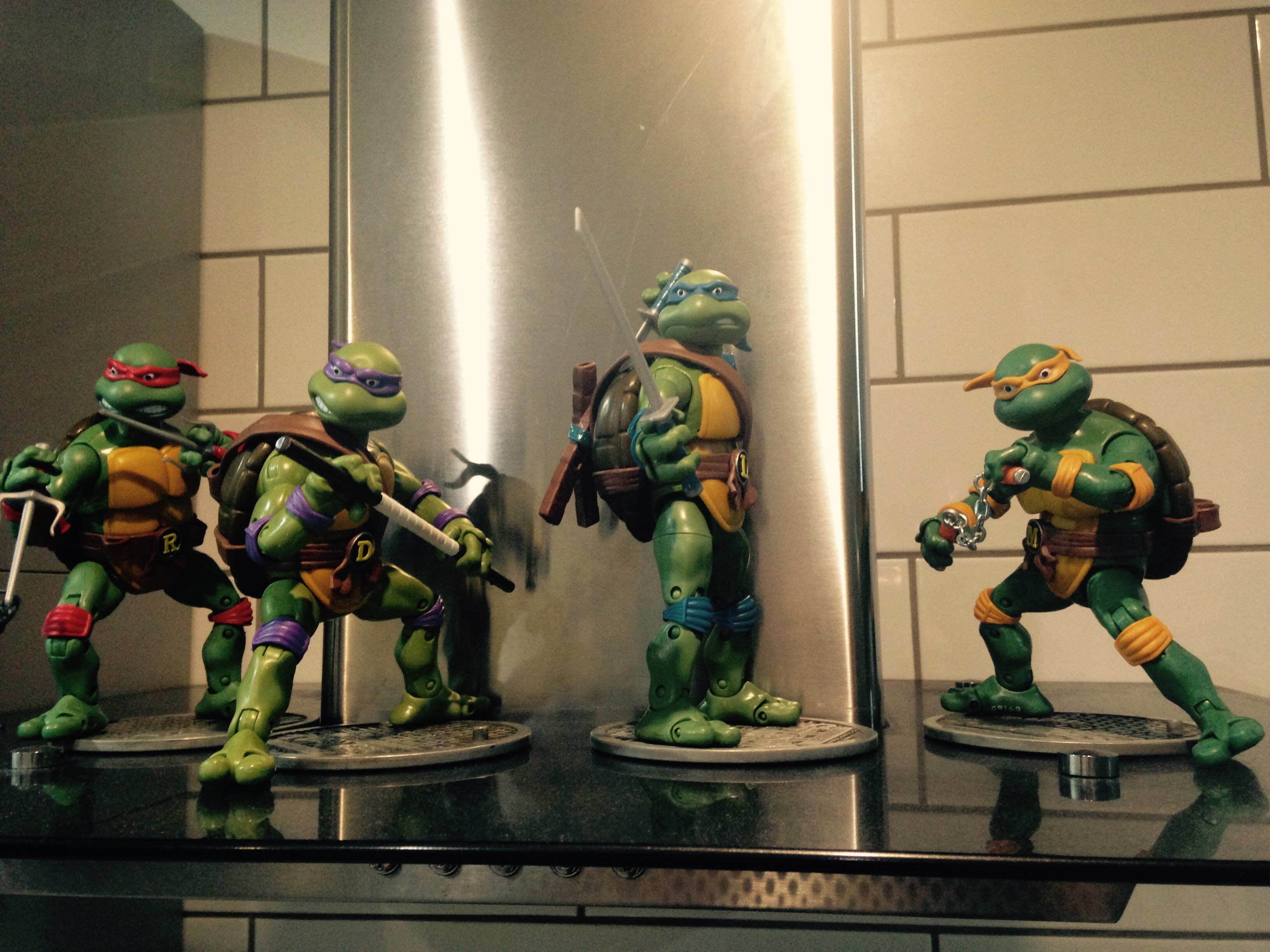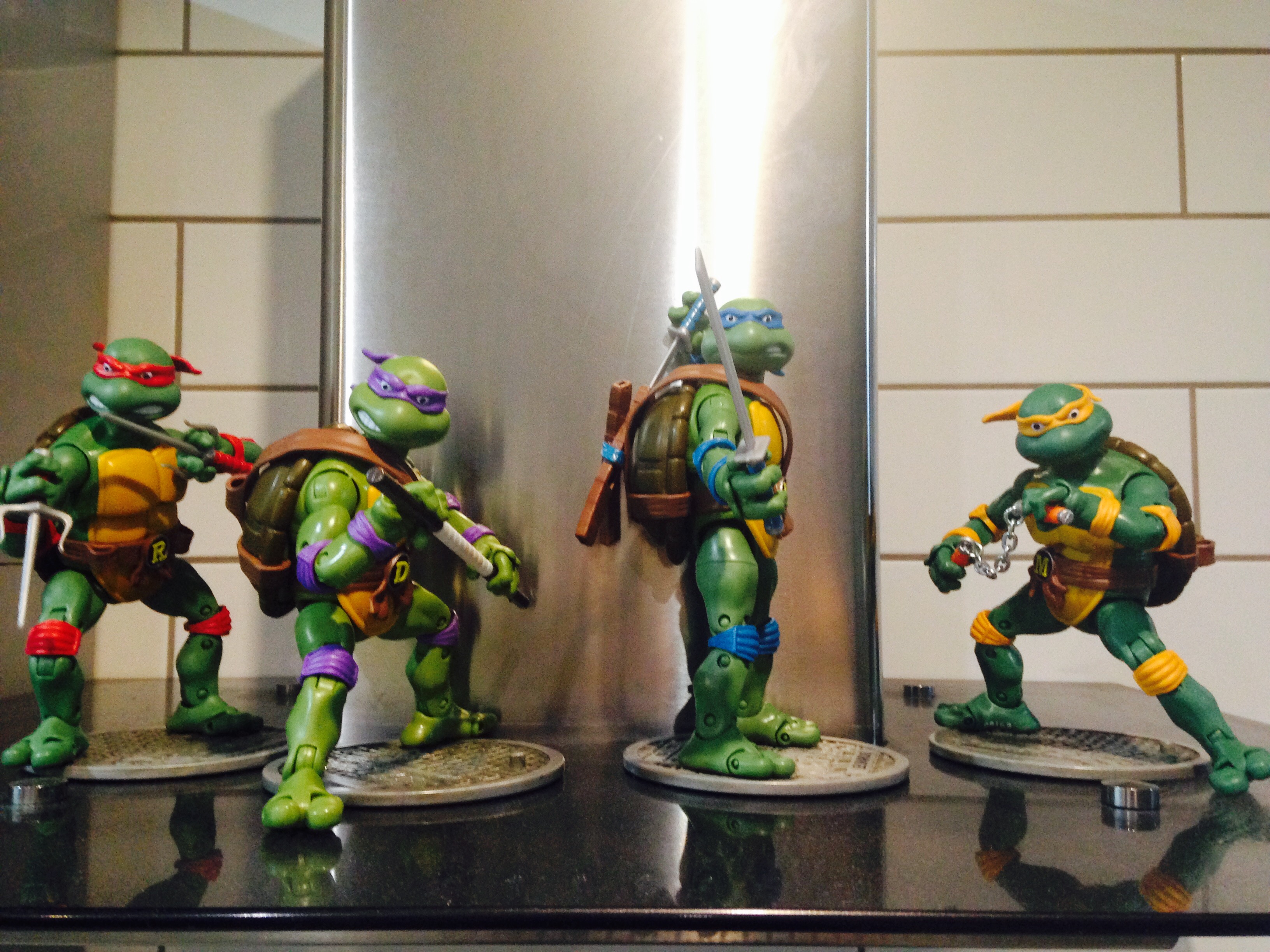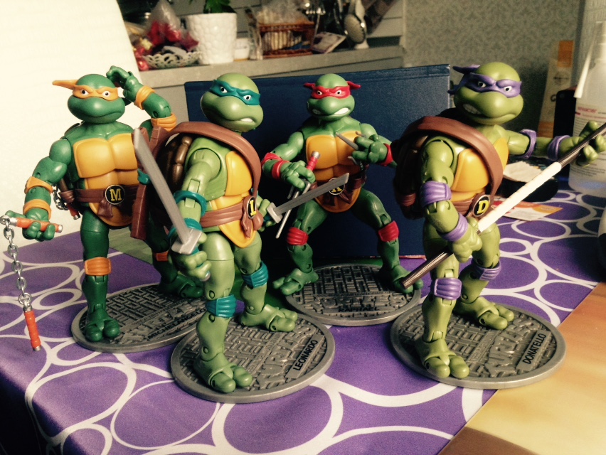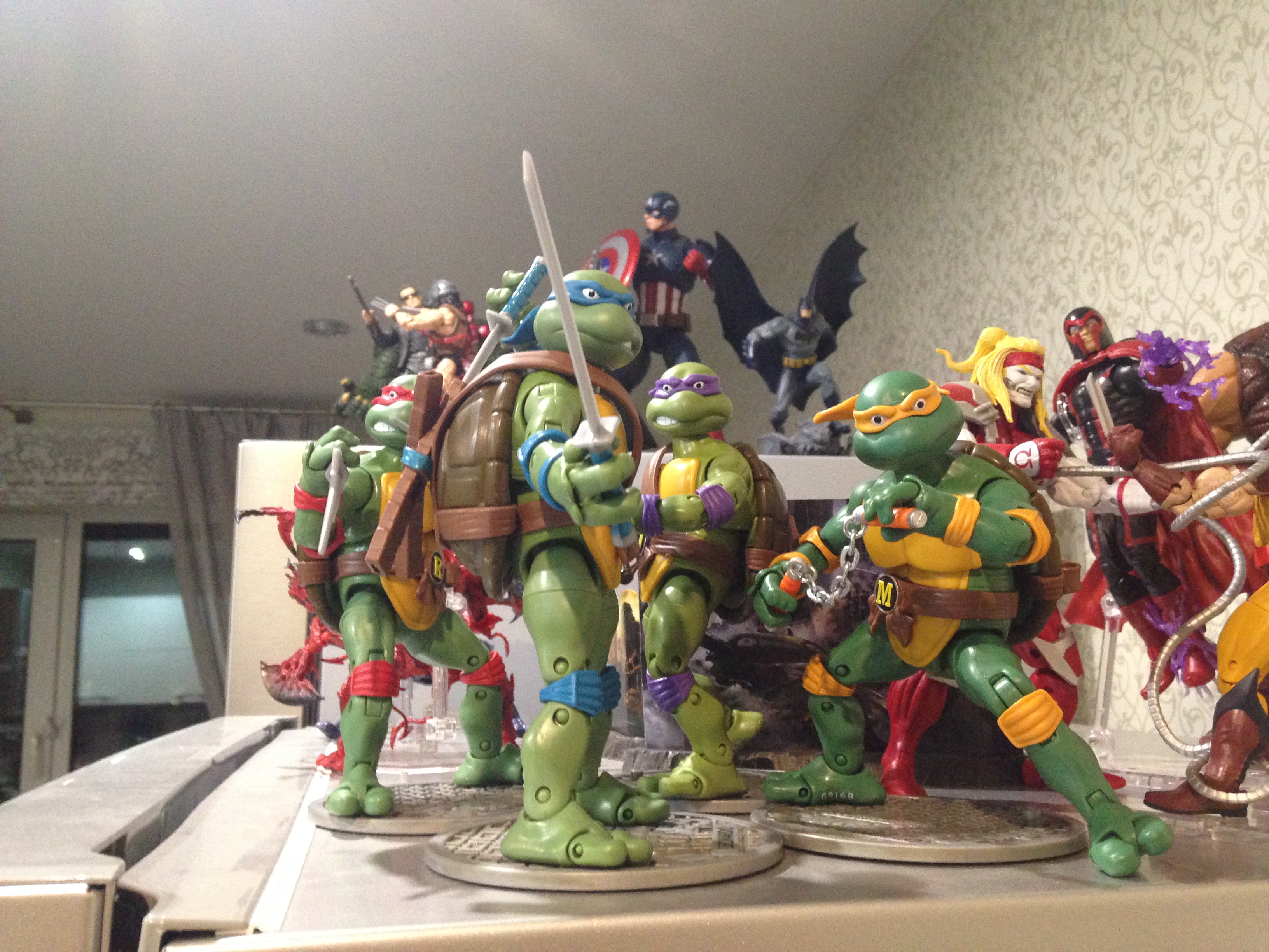 Моя любимая серия - NECA 2009 года, на юбилей черепах сделанная. Там нет подвижных пальцев, но это нормально.