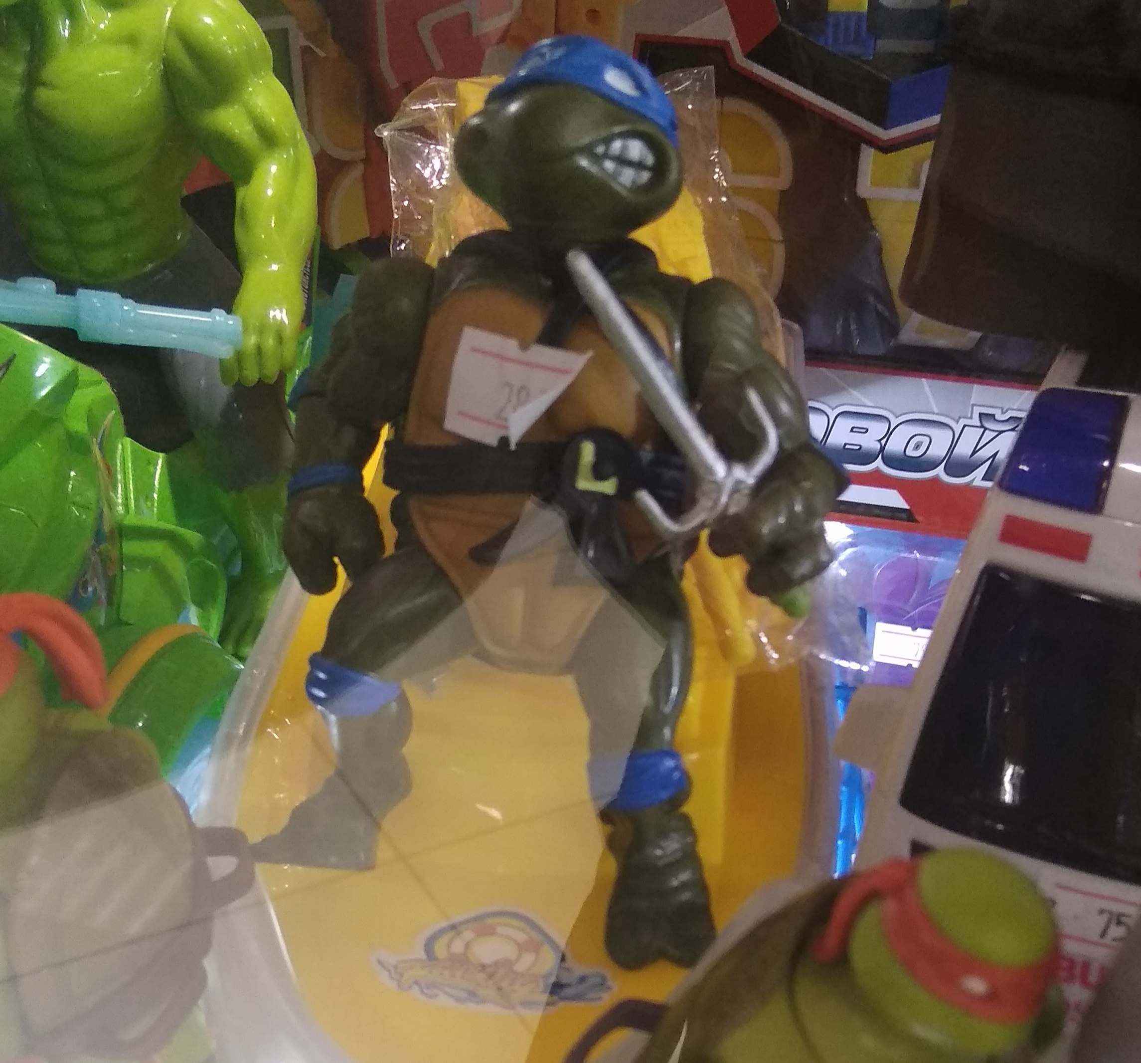 Олсо зырьте что нашел. Подделка плеймейтовской черепахи, с саем рафаэля от линии игрушек по майклбэевскому фильму. Я бы купил (хуле, там около 300р), будь у него родные аксессуары при себе. Меня интересует клинок, который типа катар.