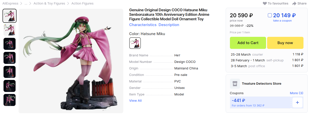 >>62124 >>62125 >>62126 Я проклинаю вас, аноны. Мало того что там оригинальные фигурки, так они ещё и дешевле чем у барыг с ВК или на алике. Денег не напасёшься