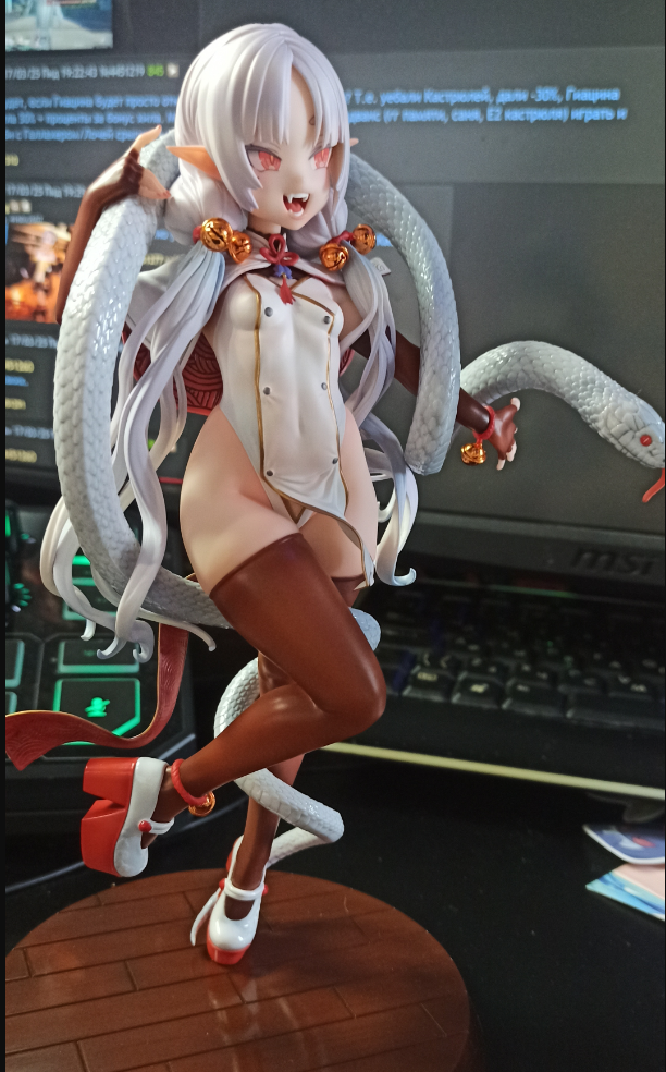 Моя первая фигурка 1/4 и очень двоякое чувство, с одной стороны "Вау, она такая большая!", с другой "Блять, она такая большая...", я просто не знаю куда её поставить с такими габаритами, но она мне очень нравится, красивая тётя с красивыми сисями Мазилка на сисе, однако, расстроила Конечно, за такую цену ждать особо ничего сверхъестественного не стоит, но почему-то именно у bear panda чаще всего такие косяки