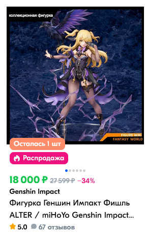 >>62137 Мне кажется этот магазин стоит добавить в шапку треда. Реально оч хороший магаз, брал там раз 5 и все было охуенно. Там кстати даже бывали фигурки дешевле официальной цены.