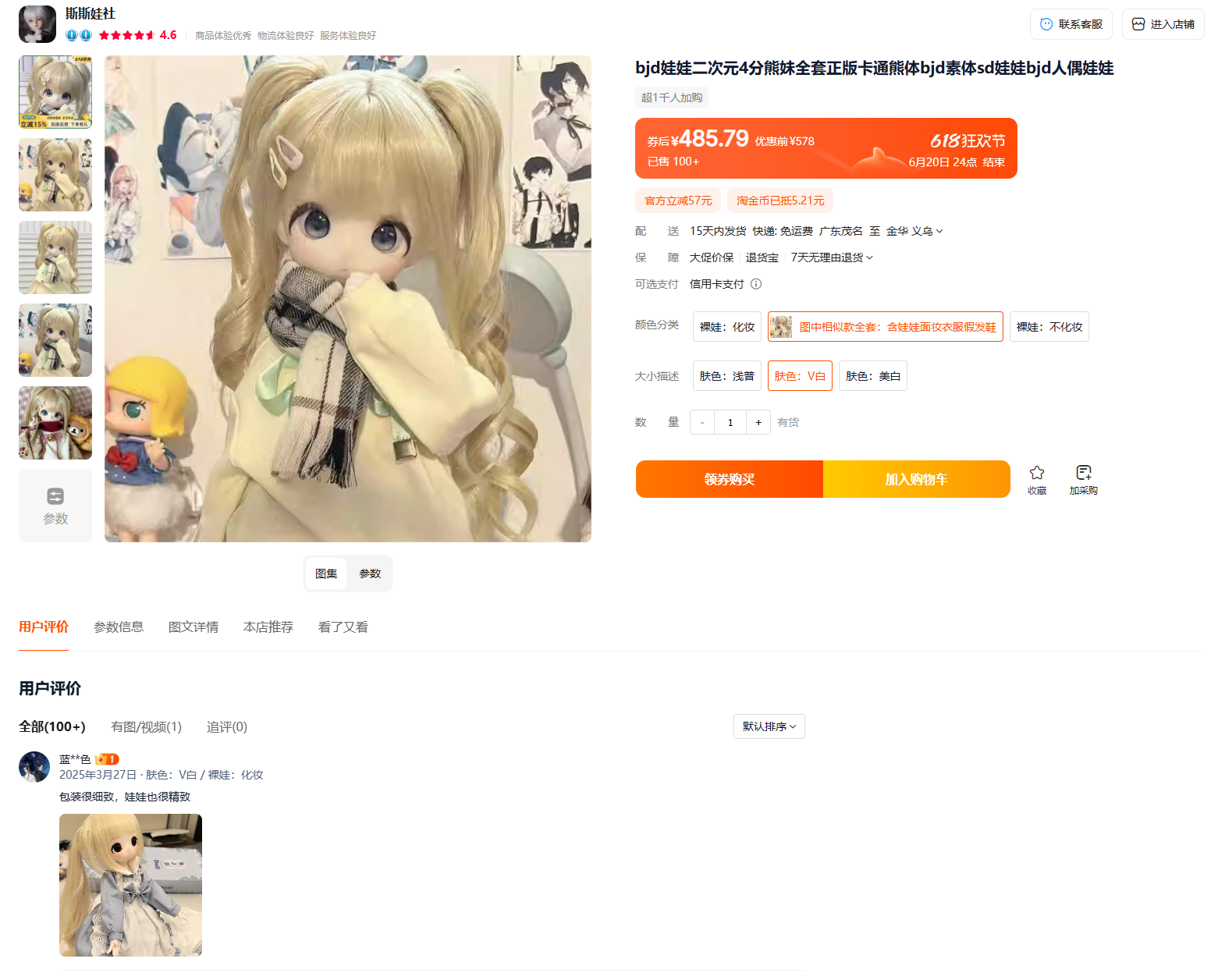Затаривался на тао и хотел как обычно фигурку какую нибудь взять в нагрузку, но ничего не приглянулось. По итогу заказал достаточно дешёвую бжд 1/4 (первый опыт с ними) за 6к. Сегодня пришла на склад с прочими остатками заказов, отправил посылку на упаковку и остаётся только ждать свои 13кг барахла. Не формат треда но да и ладно