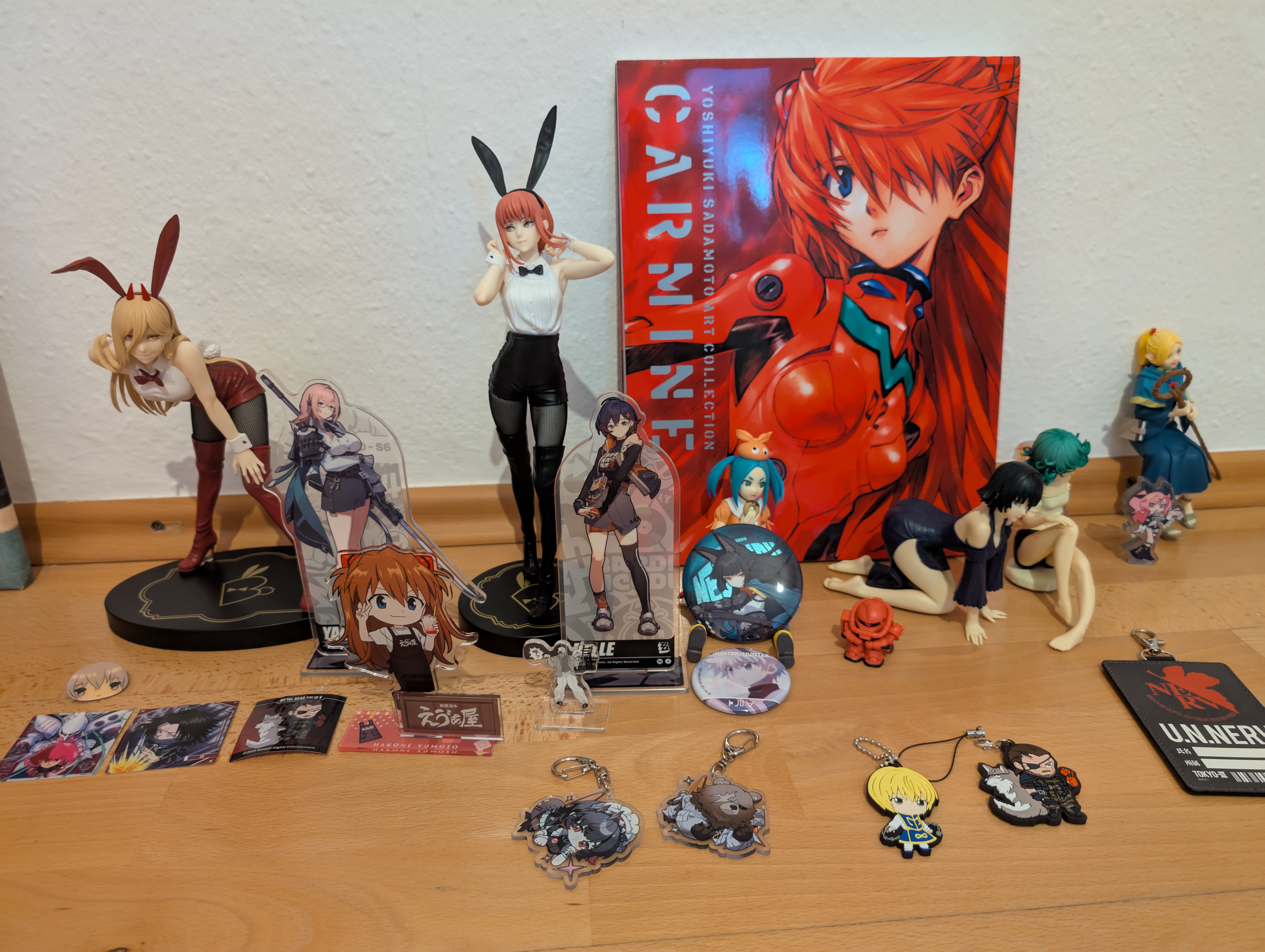 Побывал в трусонюхии. Был в Aкихабаре, Осаке, Киото. Aнимешных шопов очень много, но есть одно большое НО. В каждом магазине один и тот же сортимент. Даже там где продают б/у. Короче был немножко разочарован. Вот на первой пикче все что купил, при чем интересных мне франшиз там было очень мало. Например по хантеру там были одни и те же фигурки гона, куллуи и пауков, а тех что нужны были мне - хуй. Особенно то, что в Aкихабаре не было почти никакого мерча по steins;gate это прям пиздец какой-то.