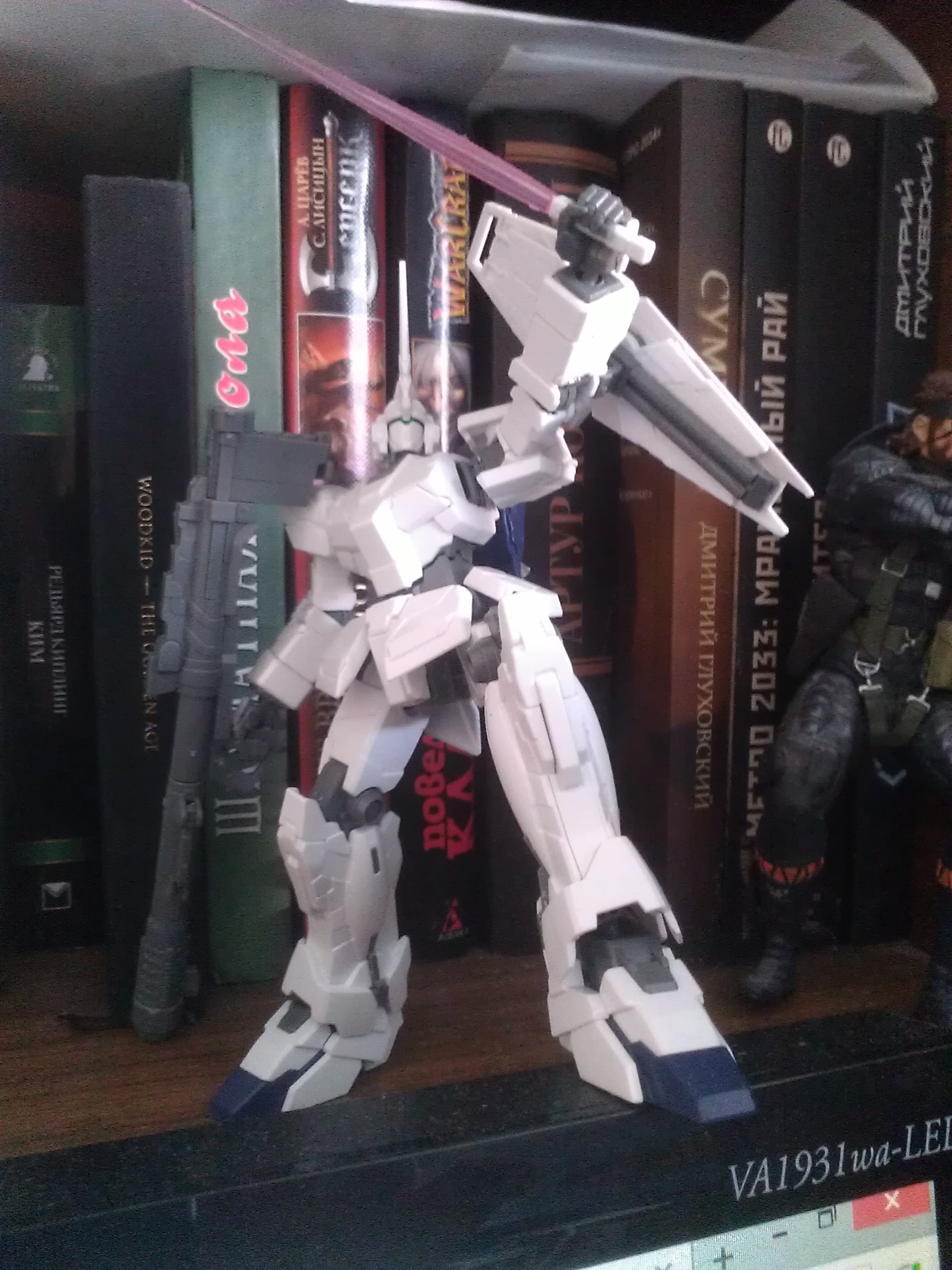 Дособирал первого гандама. http://www.amiami.com/top/detail/detail?gcode=TOY-GDM-02166&page=top%2Fsearch%2Flist%3Fs_keywords%3Dsinanju%24pagemax%3D20%24getcnt%3D0%24pagecnt%3D1 Сначала был просто в эйфории - поначалу все детали идеально подходили друг у другу, а не как в русских/китайских моделях, где фиг соберешь без молотка и мата. Ближе к концу попался один щиток на ногу, который ну очень плохо встал на место, еле как присобачил. Потом, при сборке талии так и не понял, как собрать пояс из колечек - на картинке они просто соединены, как будто насажены на веревочку, но веревочку туда никак не прикрепить. Ладно, не стал собирать эту часть, ее все равно почти незаметно. Что хуже всего - огромный джетпак очень сильно тянет робота назад, с весом не рассчитали. Оружие фиг вставишь в руки - кисть двигается слишком легко, и оружие просто тянет всю кисть вниз. Да и прикрепить, к примеру, базуку я так и не смог - размер не позволяет. В итоге - поначалу очень хорошее впечатление было слегка подпорчено описанными проблемами.
