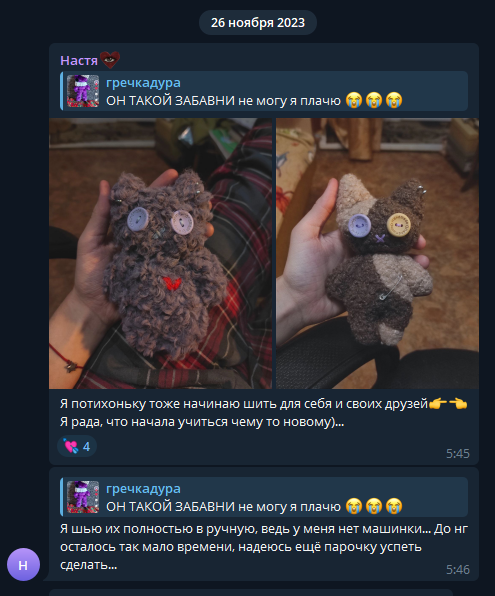 Я перебрал все каналы в которых она писала, самый интересный SЕХ/LIFE Чат 🔞 (18 сообщений, последнее 19 ноября)
