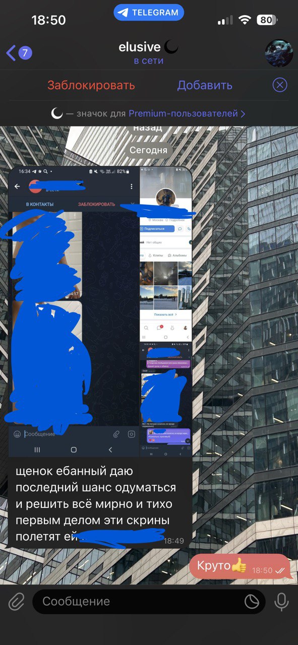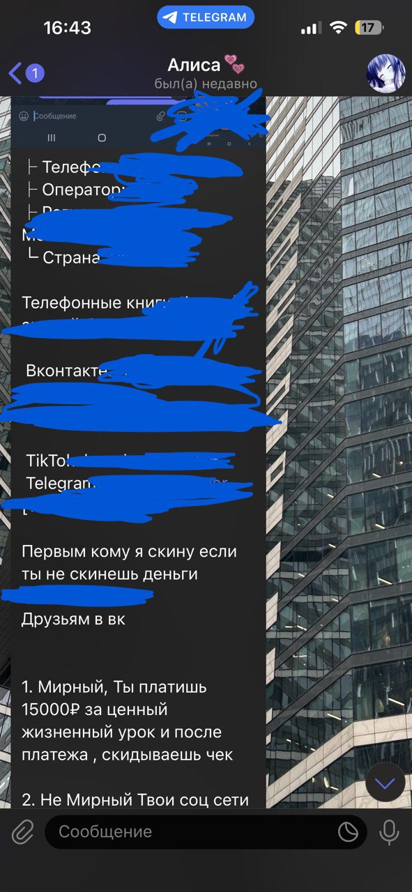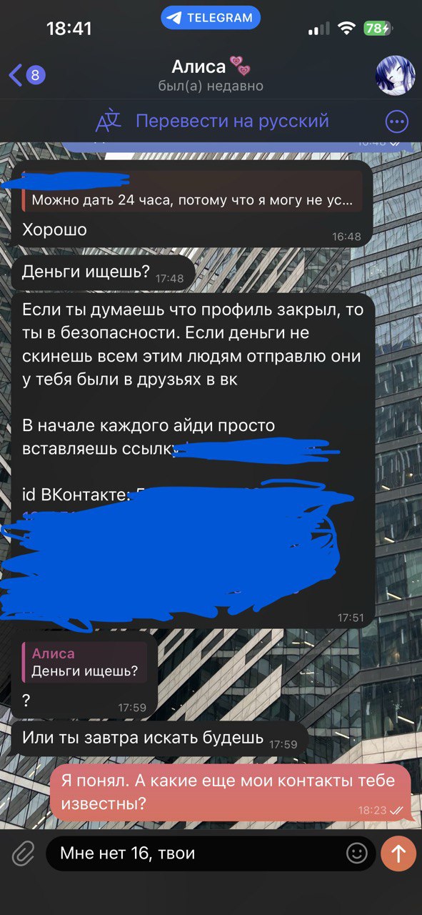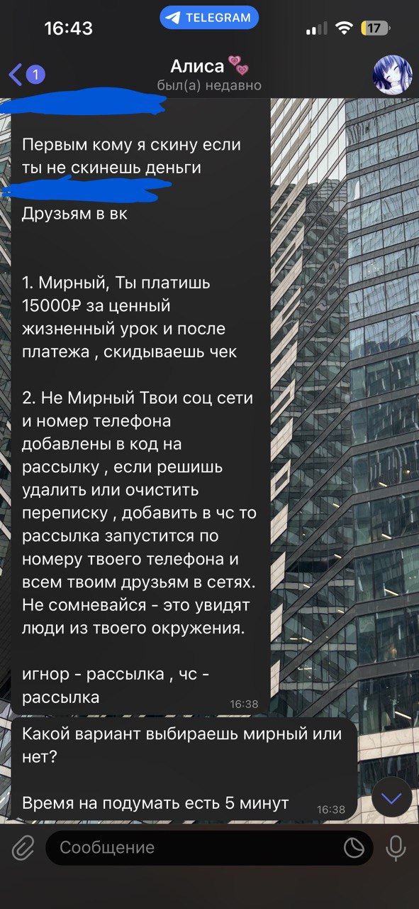 Ему нет 16 и пидорас начал шантажировать - либо бабки в лице 15.000 либо он сливает. Он настолько мудак, что не чурался кинуть нюдсы брата восьмилетней двоюродной сестре(!) Мы тянули время шантажиста и в итоге не повелись на провокацию.