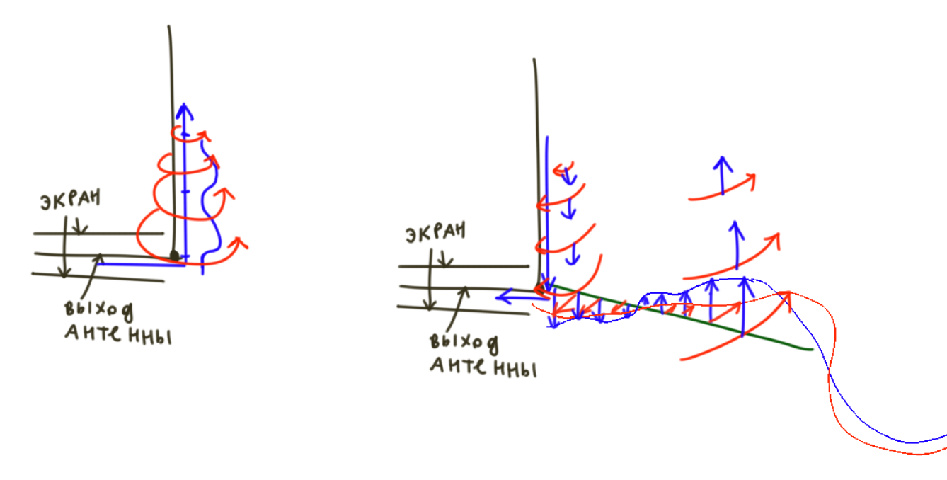 Если антенна сложной формы, то там кучи таких вихрей разнообразным образом складывающихся - это всё ещё и отражается от других элементов антенны и прочее сложное. Ну и дальше можно придумывать магнитные антенны, где катушка, вертикально идёт магнитная составляющая, а кругами горизонтально электрическое и всё что захочешь прочее.