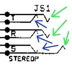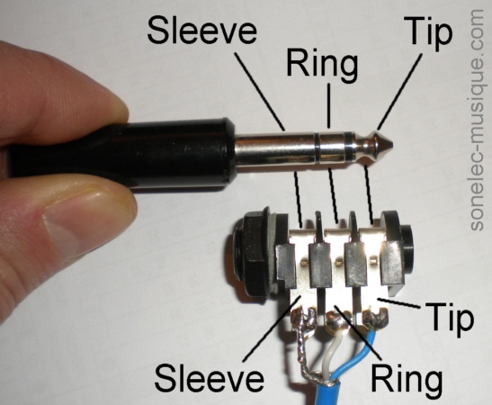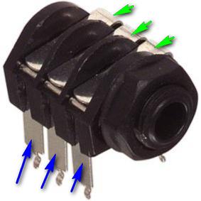 Когда воткнешь штекер замкнется зеленая группа контактов в разъеме и соответственно каждой ножке на штекере будет соответствовать ножка на разъеме. Косяков может быть много помимо разъема, можешь напрямую припаять с гитарного кабеля два провода и наушником посмотреть прохождение сигнала по схеме.