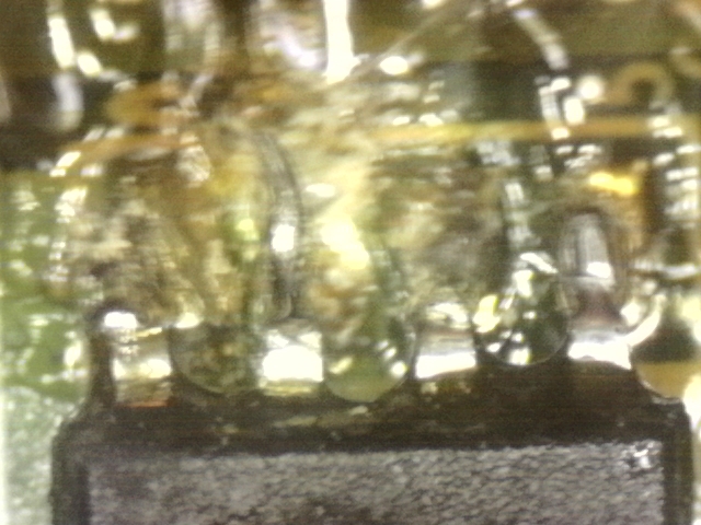 Достал с полочки некогда залитую клаву для PS3 у которой при нажатии FN стало дублироваться нажатие W, при помощи мата снял клавиши, достал пленку, собственно на скане видно почернение в некоторых местах где видимо пошла электрическая коррозия, помочил в спирте периодически потирая и было видно что жидкость таки меж пленок просачивается в неустановленных местах хотя сами пленки не разделяются. Вот думаю как просохнет иголкой потыкать или скальпелем порезать в местах где потемнело. Какие еще есть варианты?