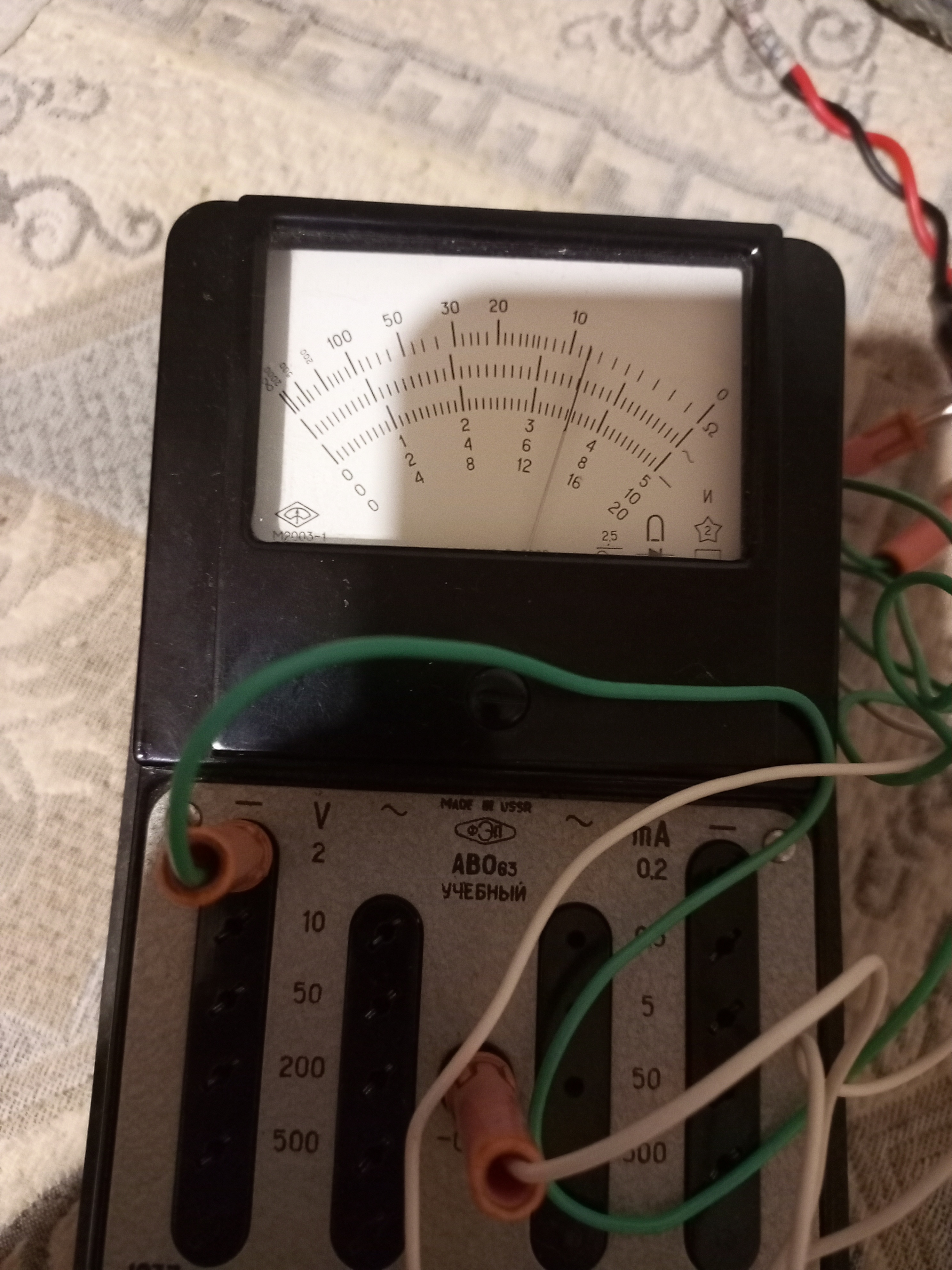 >>586380 Кстати, нормально показывает, только требует включения головы. Вот смотри: у тебя вход на 2 вольта, на шкале его нет, зато есть на 20. И если показания разделить на 10, то...