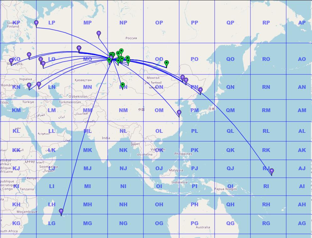 На УКВ в целом связь делится на два типа: связь в пределах прямой видимости и связь с отражением от чего-либо. Выше 1200 МГц уже и прохождения реже и стремительно падает число корреспондентов. На 1296 МГц ещё можно связи проводить в FT-8 на удаче повернув антенну в сторону какого-то крупного города или региона. А вот на 5.6 ГГц жизнь есть фактически только в EME связях или вовремя полевого дня и то, в центральной части РФ по сути.