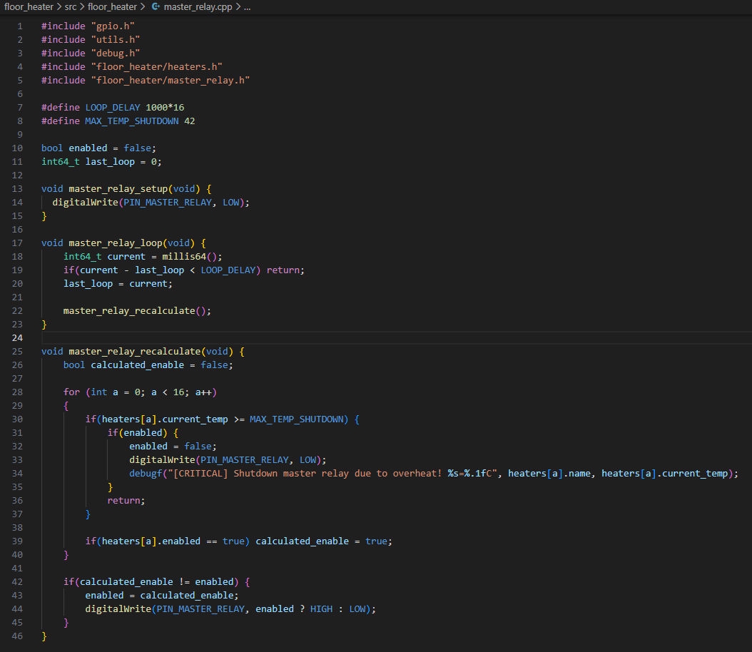 >>587765 >Программно? Припаял на лишний пин ESP32 реле и каждые 16 секунд проверяю надо ли включить или выключить его. Реле разрывает входящие 220 на симисторы. Питание на ESP32 идёт от внешнего отдельного БП. >как обратную связь организовал? В центре каждой зоны по термистору. Взял 4х жильный экранированный провод и впаял в него термисторы. По 2 термистора на провод для двух зон.