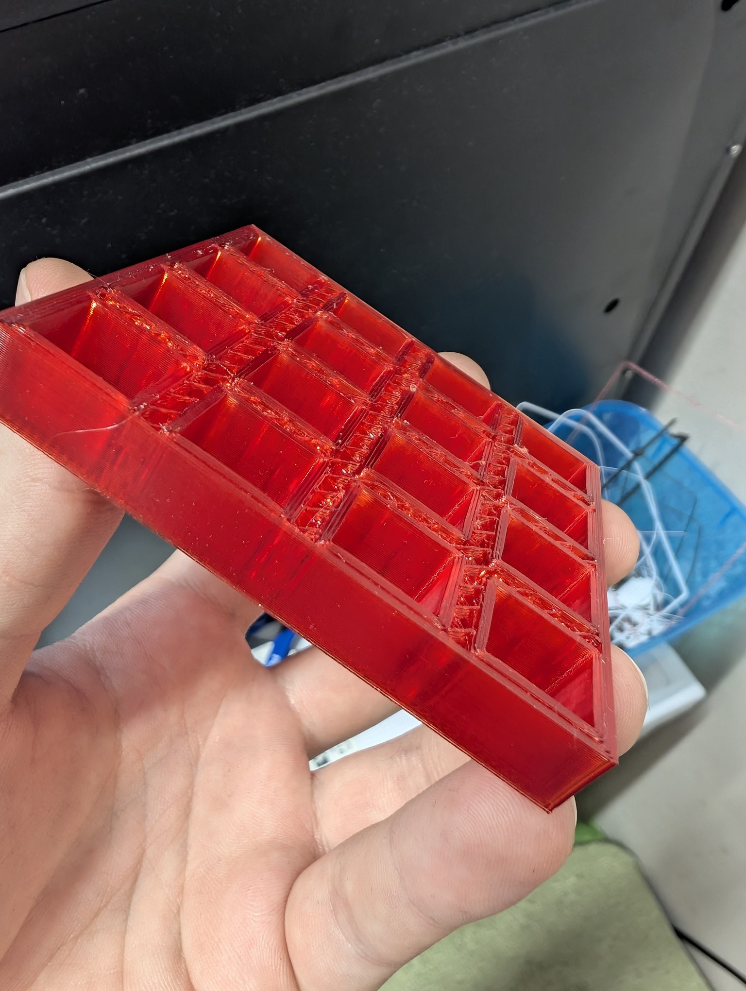 >>573265 Да я прям из вакуумного пакета распечатал, там и силикагель был. Паутину забыл сфотографировать, сейчас я снял её уже, остались только лохмотья на стенках внутри которые хуй отшлифуешь. Качество конечно по большому счёту отстойное, но геометрия в порядке, всё достаточно крепко, поэтому я доволен, оставлю деталь как есть, тем более всё равно не лицевая. Особенно доволен учитывая что я буквально впервые петгом печатал, даже кораблик не делал и не калибровал ничего, прям на похуях в слайсерере поставил дефолтный петг и с первого сантиметра катушки поехал.