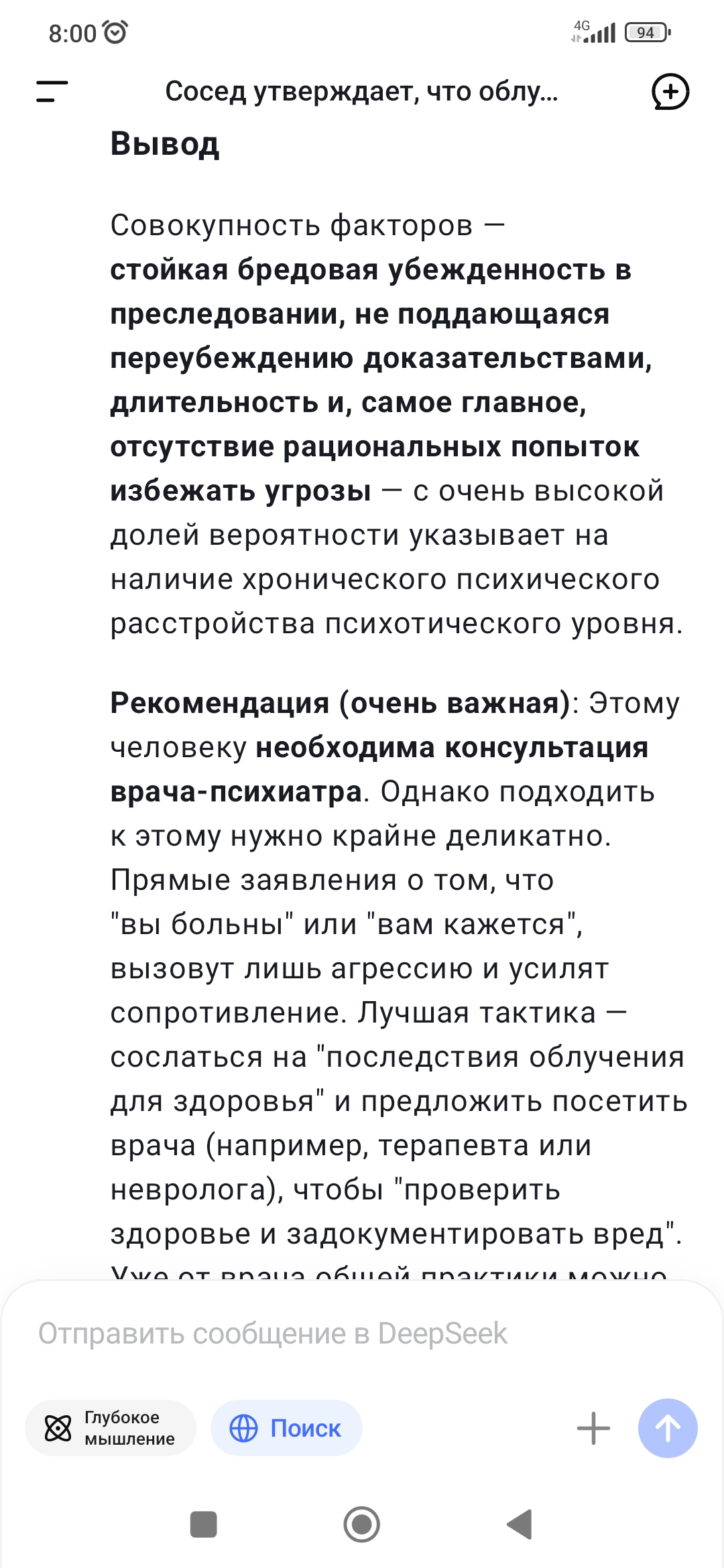 >>581811 Ну ты понимаешь как обычно себя ведет человек когда у него что-то болит, резко ухудшается самочувствие и проблемы со зрением? Правильно, идет к врачам и в диагностические лаборатории, уточнить все ли ладиться физиологически в организме, что с кровью, что с состоянием глаз и т.д. и т.п. Ну уехать в отпуск на курорт или на дачу или к друзьям за город, попить витаминов, увеличить физическую активность, покататься на велосипеде, поплавать. Посмотреть что и как будет. Это логично, а что делаешь лично ты? Правильно, ищешь излучение и какие выводы из твоего поведения можно сделать? Не очень адекватно ситуации, тебе не кажется?