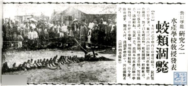 Действующая в то время газета Shengjing Shibao сообщила, что в водоёме провинции нашли останки дракона, которые перевезли и выставили на всеобщее обозрение. Мышечные ткани существа уже сгнили, остались только кости.