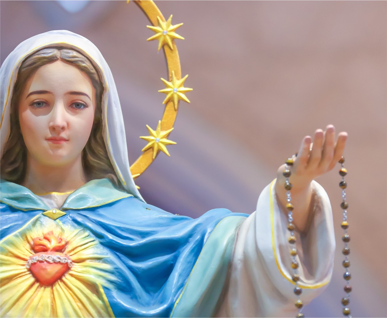 en.wikipedia.org/wiki/Our_Lady_of_Fátima >По свидетельствам троих детей (особенно Лусии, самой одаренной из провидиц), видение было ростом около метра(!) и выглядело как ребёнок 12–15 лет необычайной красоты. У неё были чёрные глаза(!). Она была одета в такое сияющее белое платье, что от него болели глаза. >Она никогда не улыбалась(!). Франсиско также говорил, что она говорила, не шевеля(!) губами.