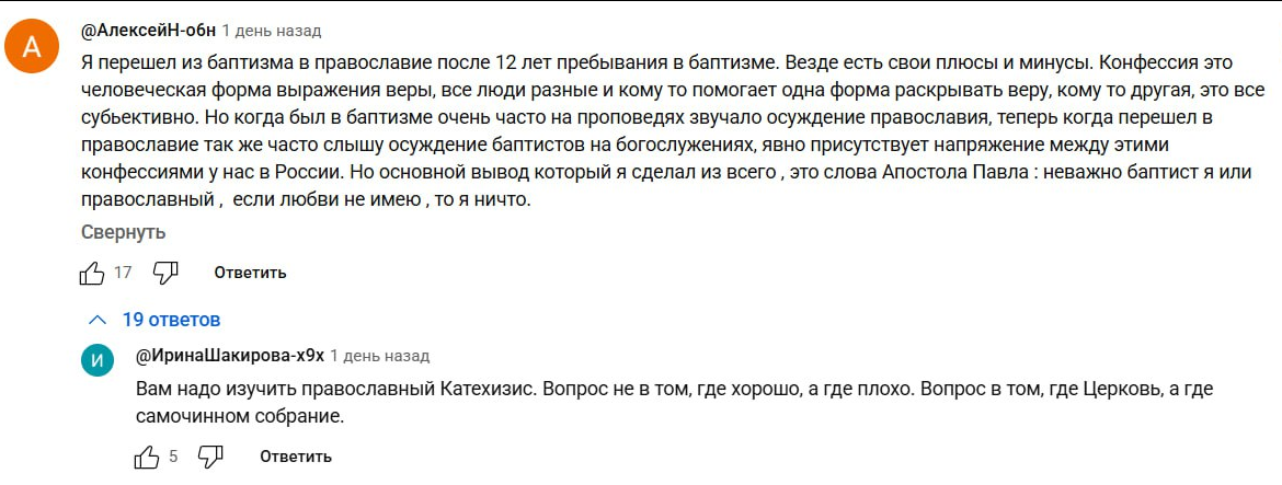 >>1144189 Зачем? Баптистская теология крещения не соответствует Библии и учению ранней Церкви. Если баптист начинает изучать эти темы, то либо под влиянием кальвинизма становится пресвитерианином пресвитериане как последовательные кальвинисты крестят младенцев, либо переходит в католичество или православие. Самый известный пример первого сценария в СНГ это Ярослав Вязовский, некогда баптистский пастор, отучившийся в Шотландии. Пример второго сценария это старокатолик Павел Бегичев, который много лет был баптистским пастором и преподавателем в семинарии ЕХБ.