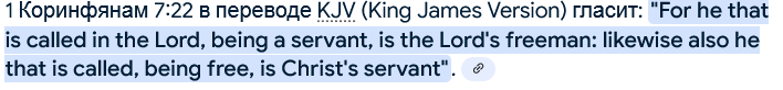 “Призванный раб — есть свободный Господень; так же и призванный свободный — раб Христов” — 1 Коринфянам 7:22
