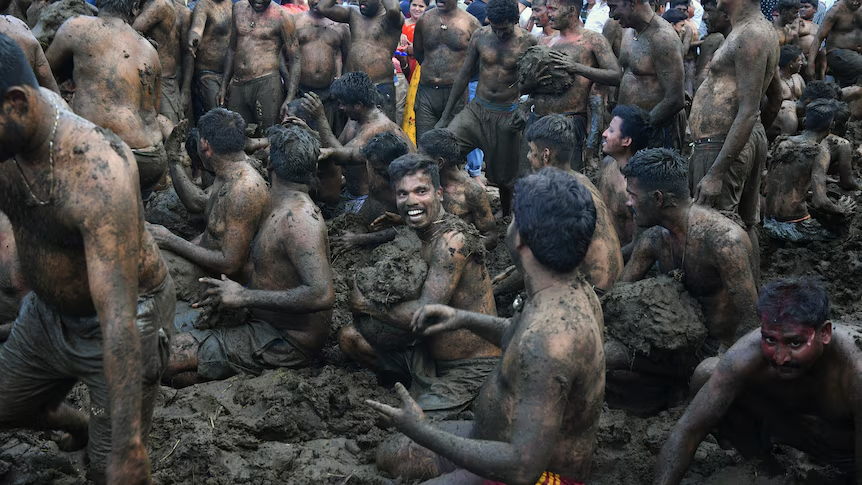 >>1160029 Участники собирают свежий коровий помет, освящают его в храме Шри Бхирешвара Свами (бога, якобы рожденного из фекалий), а затем устраивают "битву": бросают комья помета друг в друга. Во время хаоса соревнования, многие пытаются ловить летающие комья ртом