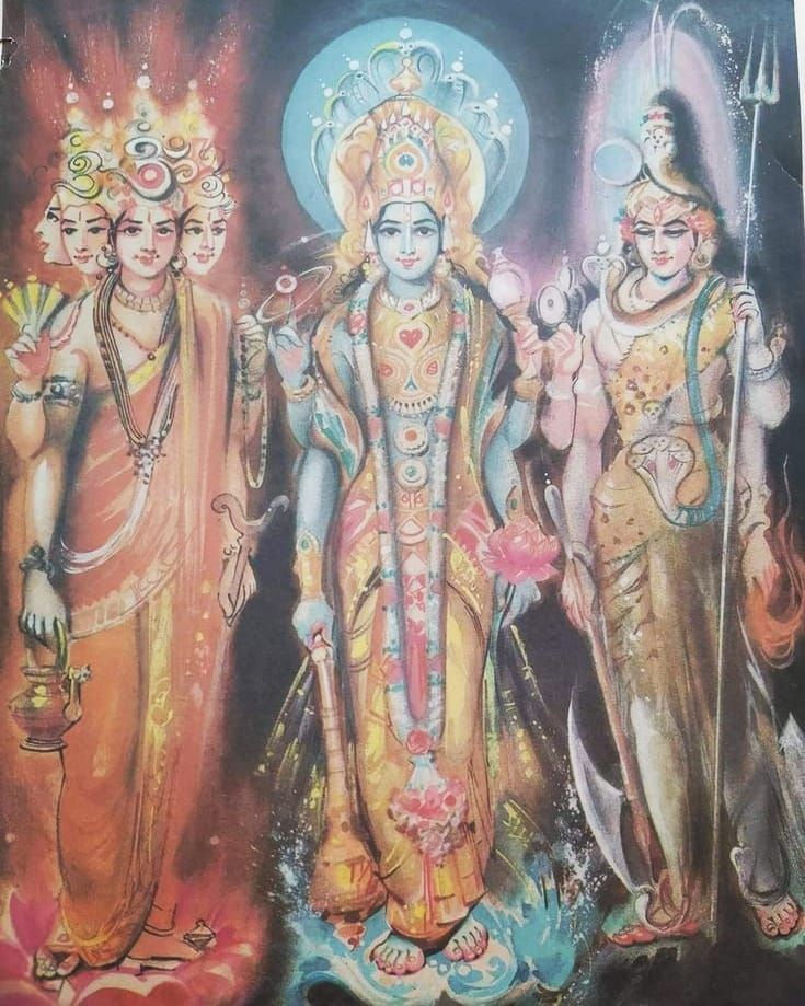 Господь Вишну действует согласно космическому ритму, Господь Шива действует из внутренней необходимости когда он захочет но это не противоречит космическому ритму, Господь Брахма действует когда захочет быть любым проявлением божества, в мире энергий, в мире действия, в мире речи, в мире вибрации, он сама пракрит, она сама паравидья из которой всё возникло