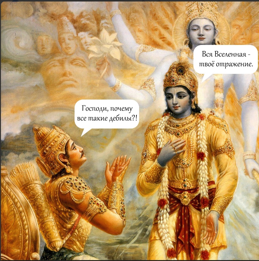 >>1162119 >для меня не выглядит истинной религией А какое тебе дело до сюжета? Не нравится - не участвуй. Это просто игра, как пантеон богов или даэдра из TES. >а многие верят не из любви к богу а из чувства страха, что как бы на сковородке не оказаться и совершают хорошие дела не потому что это в их природе а потому чтр так в книжке написано Ну и пусть верят, оставь их в покое. Люди занимаются досугом, чего тебе до людей? >а я как человек, который уже больше десяти лет с ней борюсь, могу понять тех кто сводит счеты с жизнью Не надо в депрессией бороться, тебе так бессознательное говорит расслабится и отдыхать, поумерить ЧСВ, ты тут никто и звать тебя никак, что ты можешь? Почти что ничего. Планета работает сама по себе без участия. >Не тянет это ни на благо, ни на любовь. Любовь внутри, это не что-то внешнее. Жалобы не помогут. Ты никому не нужен кроме себя самого, никто тебе ничего не должен. >скорее всего просто в конце погасят свет и все Тут нет конца и не будет. При попытке сделать конец тебе таких пиздюлей вломят что ты будешь рад любому аду из религий. Лучше не надо. Я вот не хочу чтобы был конец, мне в кайф смотреть на войны, насилие и несправедливость. Не нравится? Измени картинку, буду смотреть на что-то другое. >мне восточный взгляд на бога еще меньше нравится А никому не интересно что тебе нравится, а что нет. Поменяй картинку на экране либо страдай. Это было, это есть и это будет всегда. >если восточная точка зрения на мир такая правильная, они все живут в таком тотальном дерьме Потому что земля состоит из дерьма в прямом смысле, лол.