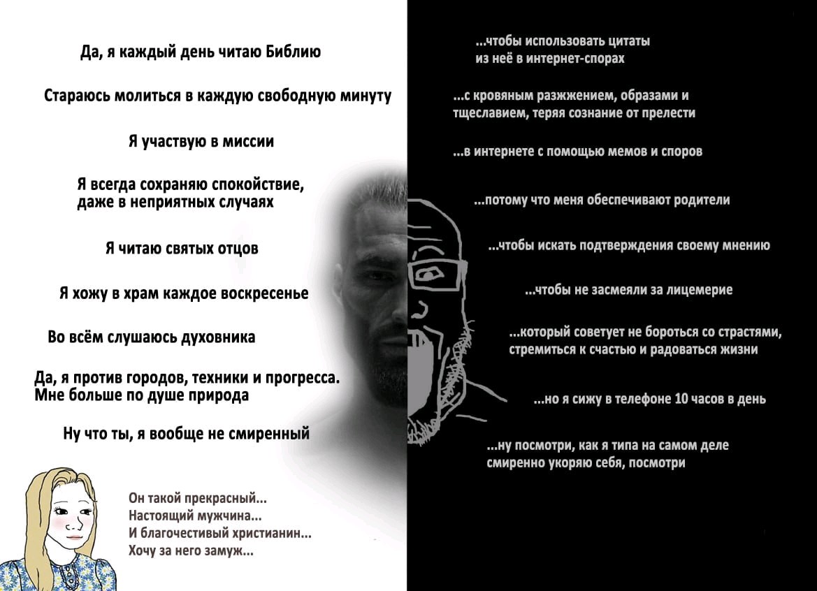 Так я говорю элементарное, медитация успокоивает, возьми и попробуй И аргументы против этого "А ты докажи что успокаивает? А это не тот покой, не православный! Осипов скозал! Вот ссылка на догмы!" И тому подобный бред в которм я должен разбираться, кто тред почитает поймет кто тут тролль-щитпостер на самом деле