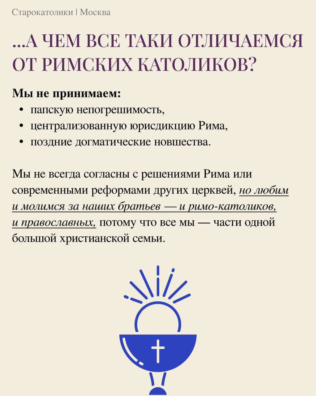 >>1172094 Они от обычных католиков почти ничем не отличаются. А от православия толкованием. Предательство Иуды у них - это результат человеческого искушения и жадности, а не часть божественного плана. Дева Мария с момента непорочного зачатия освобождена от первородного греха и получила спасение. Павел - самый важный апостол, и все послания трактуются как постулаты и обоснования существования церкви. В распятии делают акцент на муках, подчеркивается фатализм и добровольность, Христос добровольно согласился с распятием из сострадания к человечеству, и всегда подчеркивается, что именно муки "удовлетворили" божественное правосудие и искупили грехи человечества.