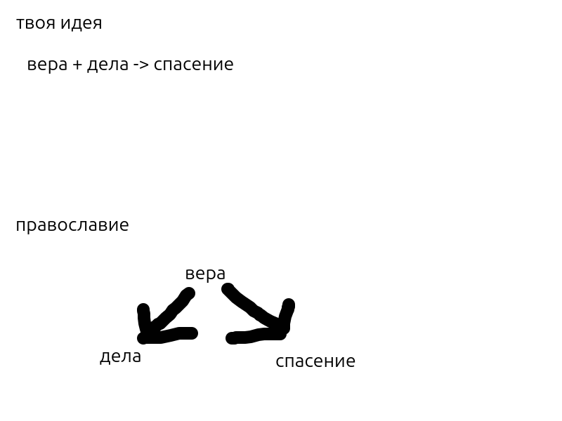 >>1175555 >по православию вообще одних дел мало нужна и вера, нужны молитвы нужны посты Это ересь, по ВСЕМ христианским конфессиям вера первична и является единственной причинной спасения, разница только в интерпретации того что значит вера, по православию если человек по настоящему верит он будет делать добрые дела. (дела следствие спасения верой а не причина)
