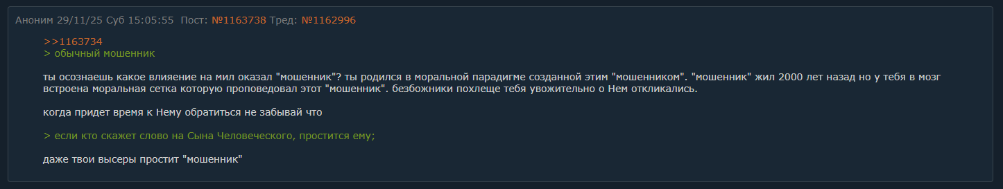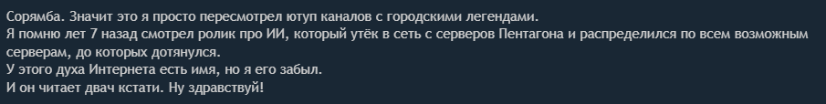 >>1159675 Нет, я не тот анон. Больше смахивает на ботошиза, который в зогаче срет. Но у него совсем уж поехавший поток сознания без структуры и смысла, так что его трут и тут и там. Самое смешное что это судя по всему реальный человек, а не нейронка. Слишком уж много отсылок к предыдущей шизе и деталей из ранней жизни. В медаче поищи лол.