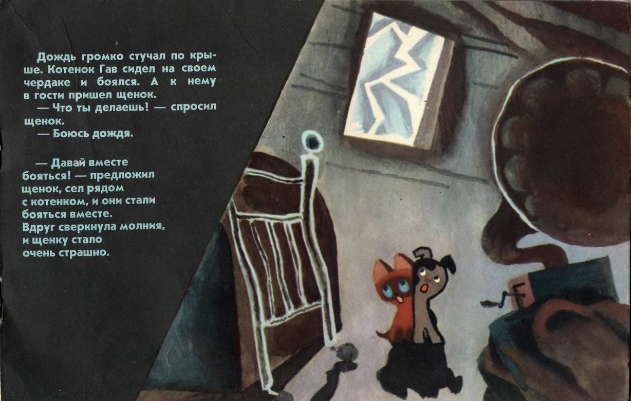Весь день льёт дождь, Дождь-зануда, дождь-зазнайка, А ты всё ждёшь, Ждёшь, когда придёт хозяйка, Фонари зажгли вечерний свет, А её всё дома нет и нет.