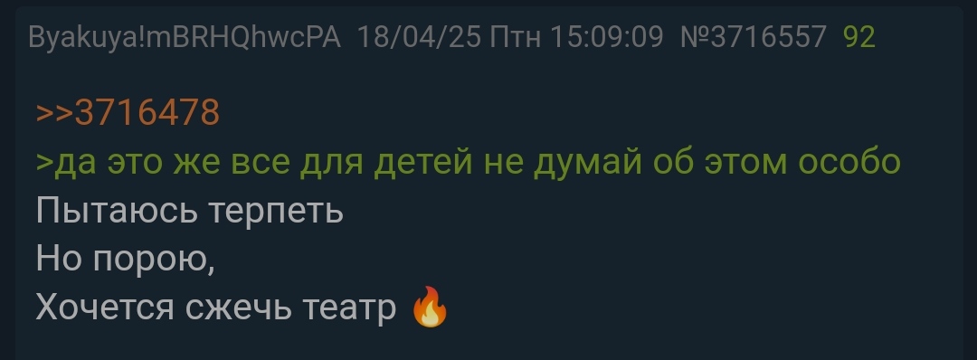 >>5506649 Речь про травлю, не мешай всё в одну кучу. Хотя ладно, скажи, на чем строится твоя уверенность? На обрывочных фактах, впечатлениях, чувствах и эмоциях? Потому что это всю иллюзия. Ты понятия не имеешь как я живу и через что регулярно прохожу, и я не собираюсь об этом писать тут, в моем убежище, потому что я сюда прихожу чтобы отдохнуть от этого кошмара и забыться, и это работает, до тех пор пока сюда не высираются отморозки, психопаты, социопаты, травители хикк, инцелы, нормисы, гопники агрессивные с работками и хорошим психическим здоровьем, с неплохой социальной адаптацией. Так скажи мне, что ты там уверен? Моя обреченность уже давно вышла на новый уровень, и возможность повеситься для меня служит мне утешением (!), а не чем-то ужасным, поэтому я себя успокаиваю каждый раз когда меня настигает кошмар, что я могу повеситься и всё это закончится. Но у меня сердечно-сосудистая система сбоит не первый год, поэтому в принципе могу умереть каждый день даже не дожив до "вешаться".