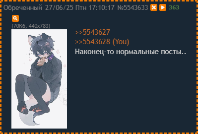 >>5543160 Летом 2014-го последний раз онгоинги ждал, помню Токийский Гуль ещё перевели как Токийский Вурдалак. Последние лет 10 не нравится ни рисовка ни цвета и сюжет нейрухой пишут, так что смотрю или с кем-нибудь (читай ради него) или когда совсем плохо. Из последнего смотрели Куда едет поезд судного дня, про грибы в жопе и мяукающую сибаину, Салатница Чудаков про не помню что и 16 бит что то там, про Дримкаст, который как бы 128 бит приставка, лол. Сейчас бы середины нулевых со стёртой памятью снова взахлёб навернул, но так почему то уже не снимают. Всмысле всё сейчас НЕ ТО. Я помню (и люблю!) ОР/ED Хлорки или Наруты (особенно 4й лол), но не могу вспомнить из Салатницы, Паровозки или Abbyss. Sad but True десу но сейчас, в эпоху AI и интеллектуальной путаницы люди разучились радоваться простым вещам и рисовать с душой. Внеебически жаль.